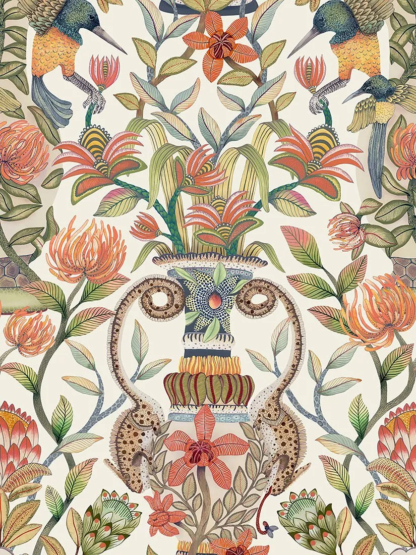 This wild garden print incorporates leaves, vines and South Africa's national flower, the King Protea.