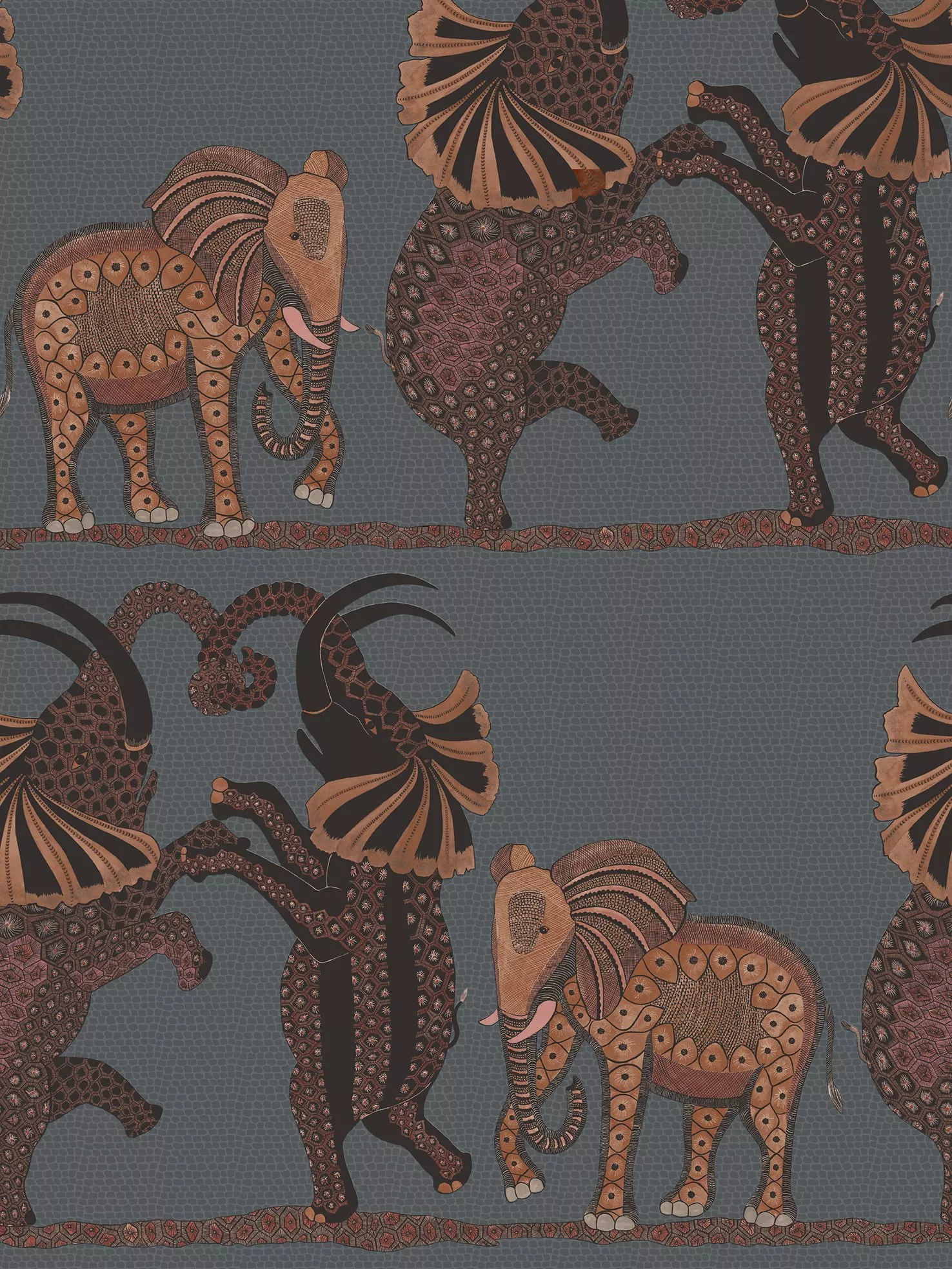 This beautifully patterned wallpaper features a trio of elephants dancing horizontally across the African plains.