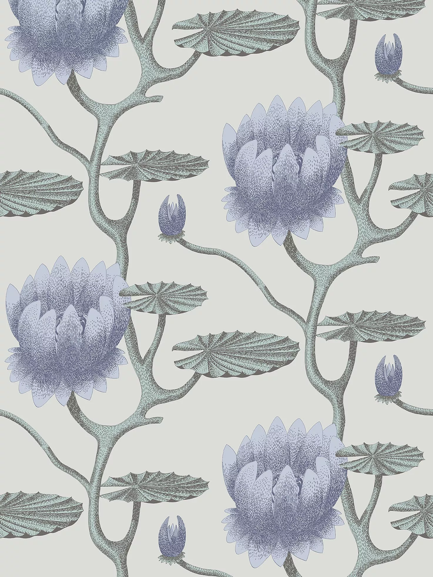 The original Cole & Son Lily design has been printed at a smaller scale and in botanical colour-washed tints of aqua, lilac, sage and chalky neutrals. The print comes in wide width 68.5cm rolls. Colours shown on-screen may vary from the original wallpaper, we therefore recommend ordering a sample to view the true colours. These wallpapers are paste the wall products.