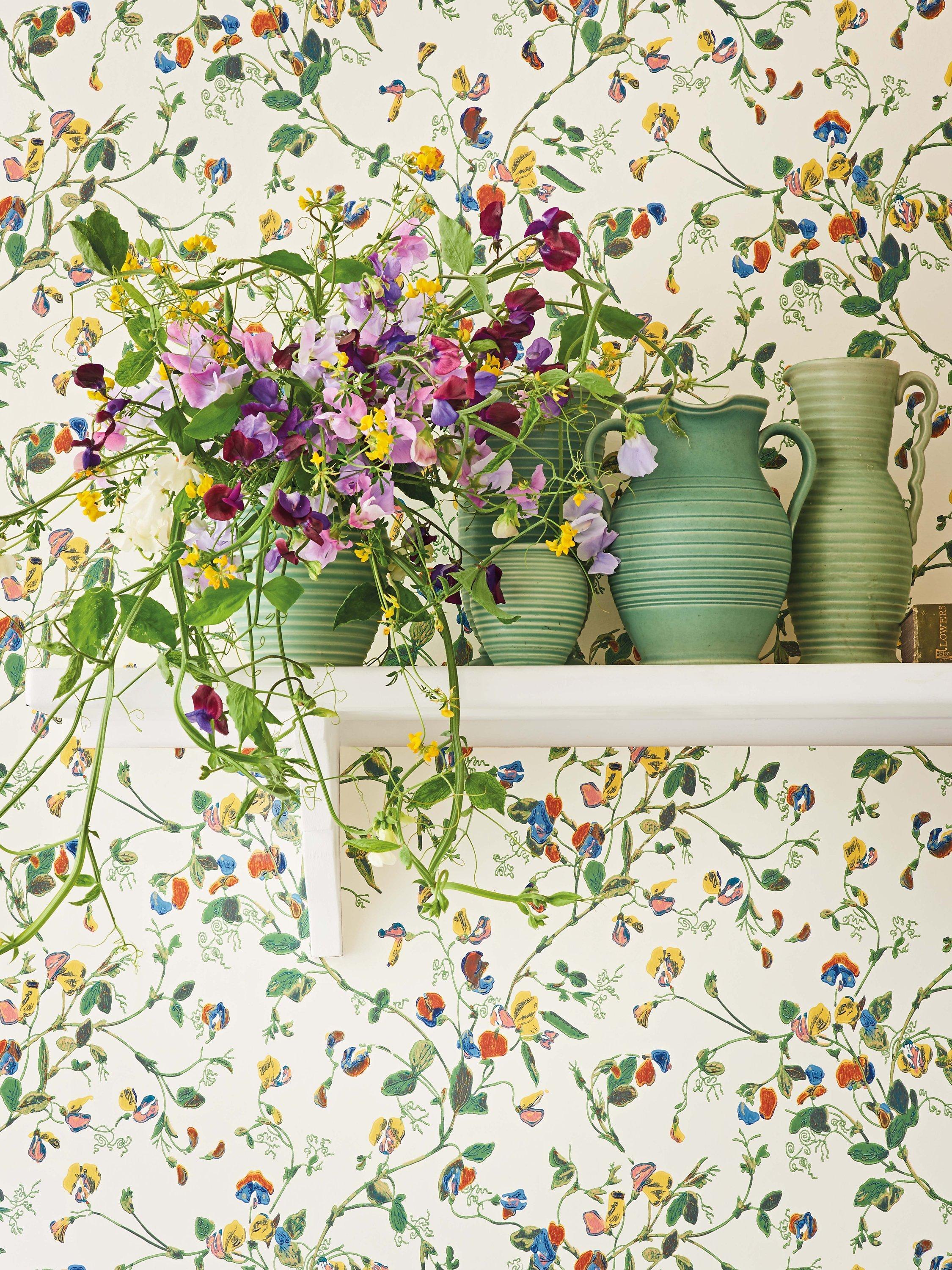 Celebrated for its graceful, frilly flora, Sweet Pea is an enduring Cole & Son motif. This heritage design is surface printed to retain the thick, tactile print marks of each petal.