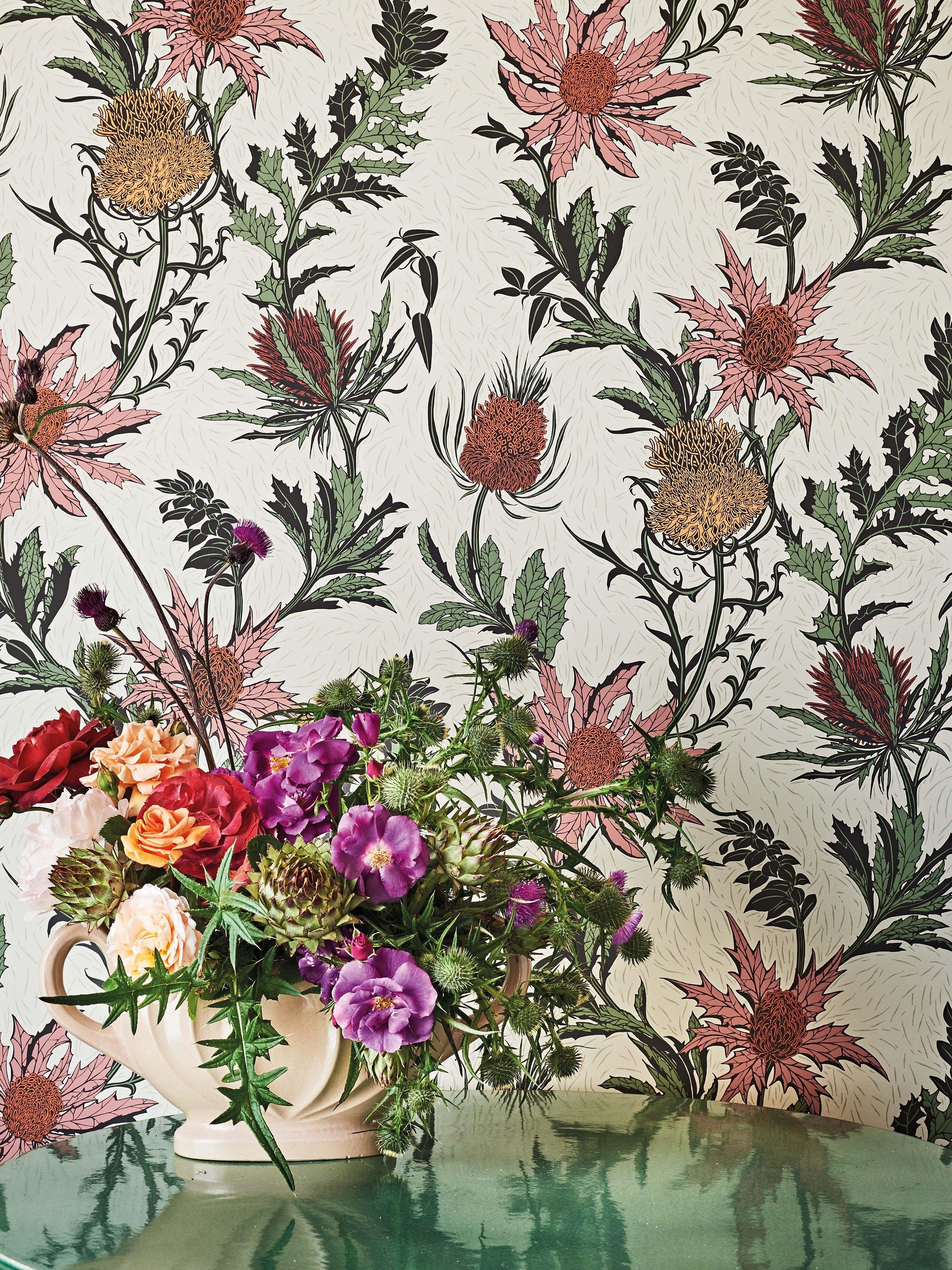 This bold trail design has been printed to reflect a screen print, with a chalky, matte finish to enhance the brittle shape of this stunning wild flower.