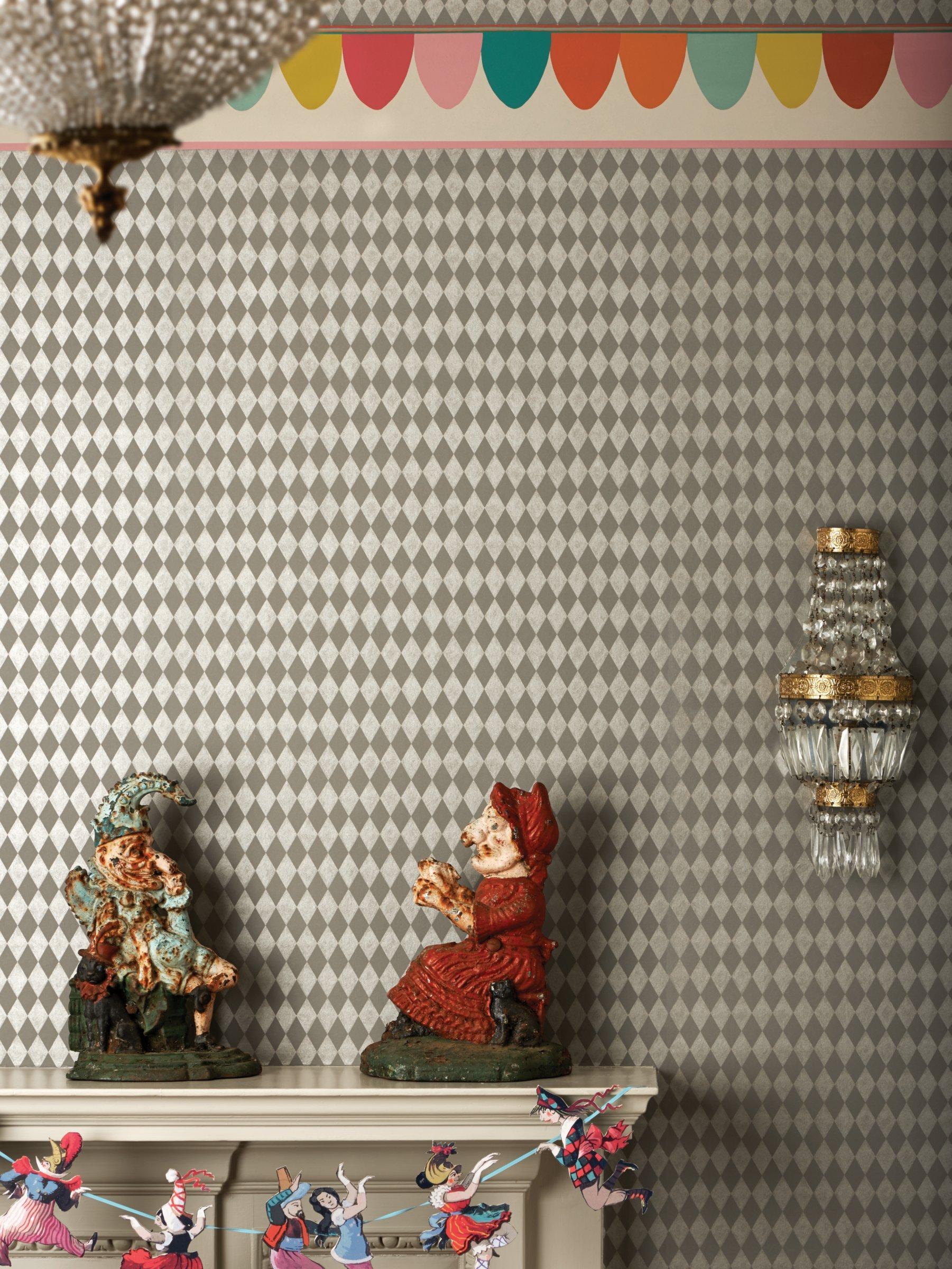 Comprising of the classic harlequin motif, Titania is a small-scale design offered in neutral shades teamed with soft, textured metallics. The design takes its name from the Queen of the Fairies in the most enchanting of Shakespearean comedies, A Midsummer Night's Dream.