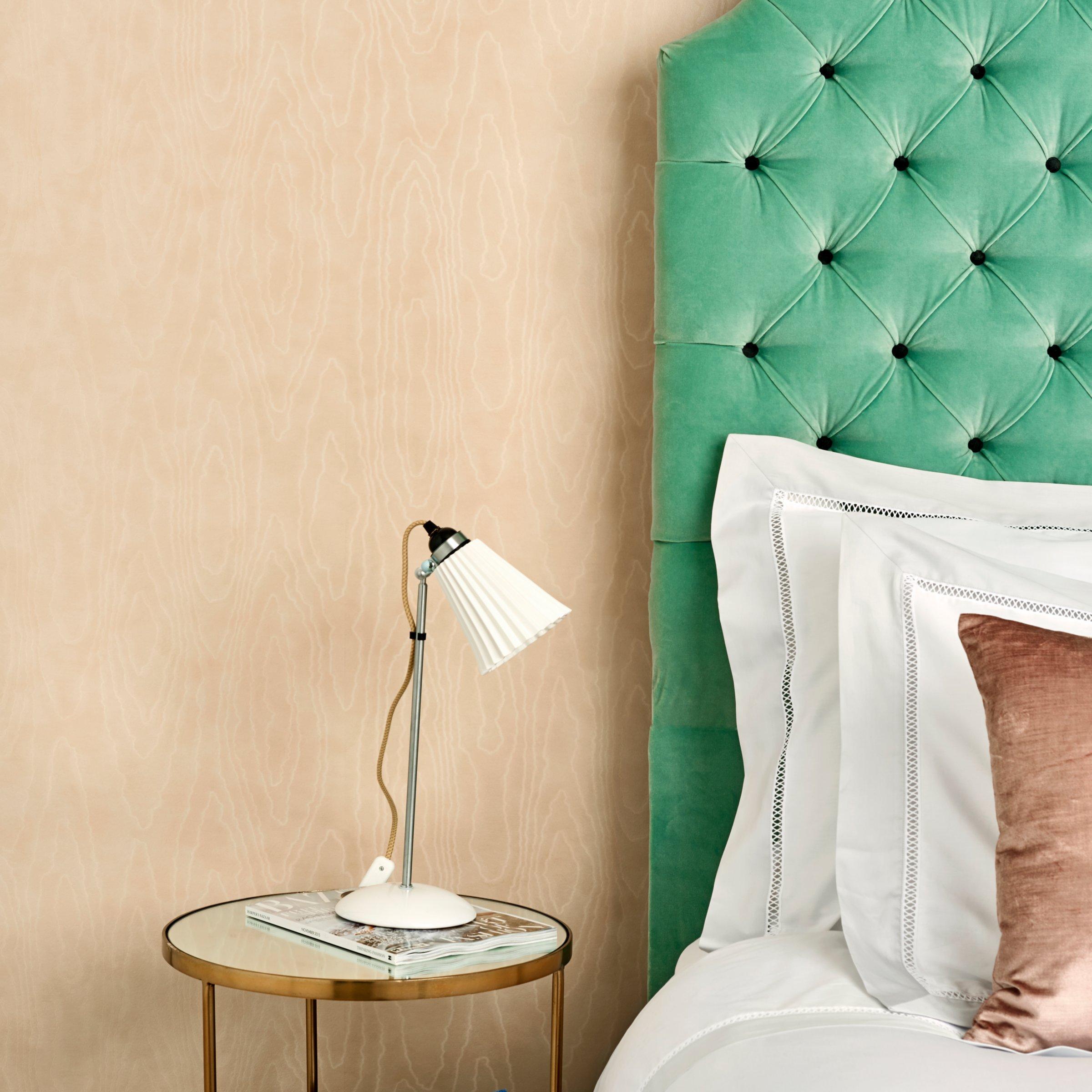 Clever use of a fine, mother-of-pearl printed ottoman texture to create a wonderfully soft, shimmering silk moire effect.