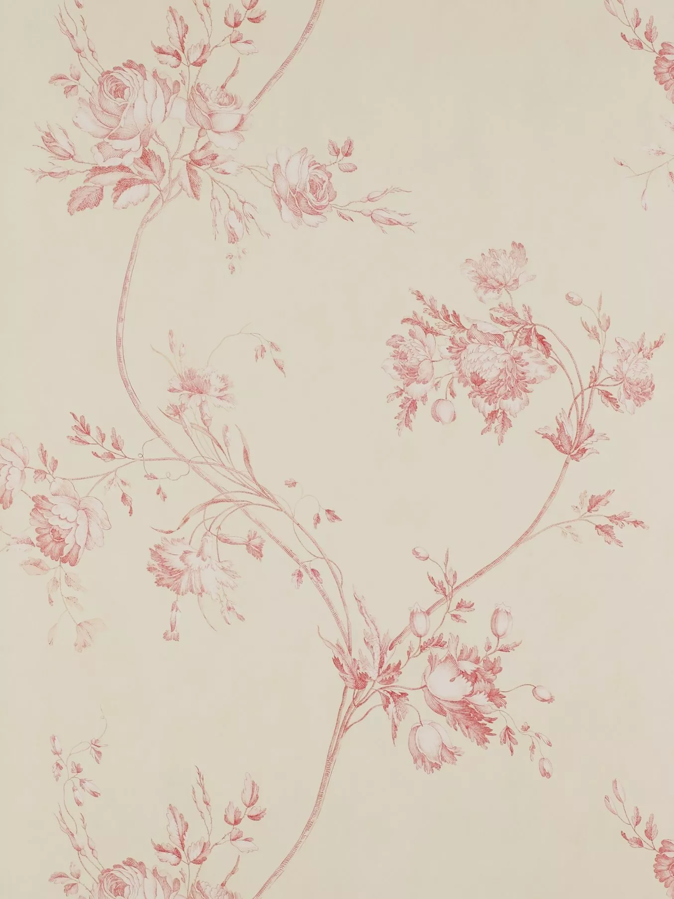 An elegant paper inspired by a design discovered in the Bromley Hall pattern book held in the Victoria and Albert Museum. A fine toile of delicate trailing roses, on a soft textured ground, with a foxed mirror effect.
