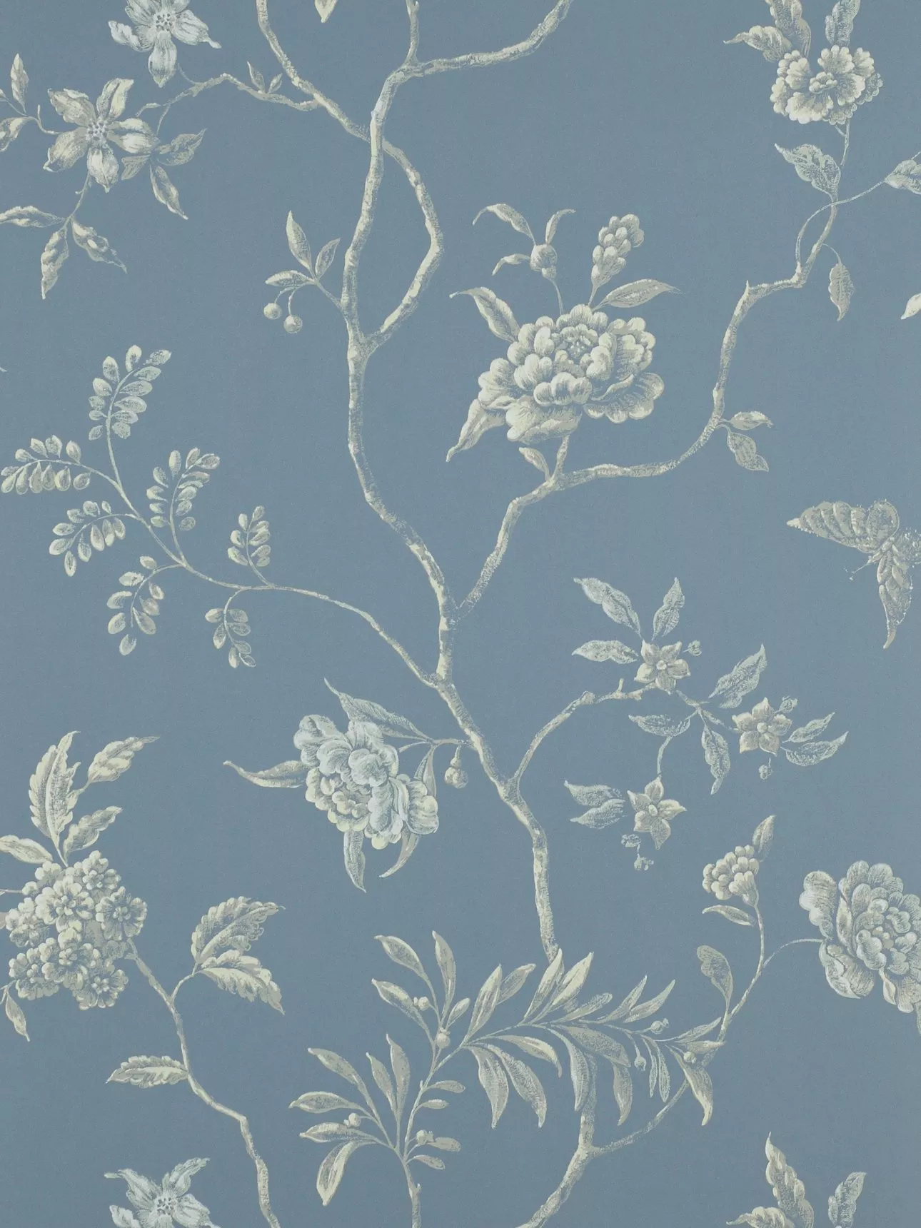 A delicate monotone floral trail, with a hint of Chinoiserie that makes it reminiscent of hand painted wallcoverings.