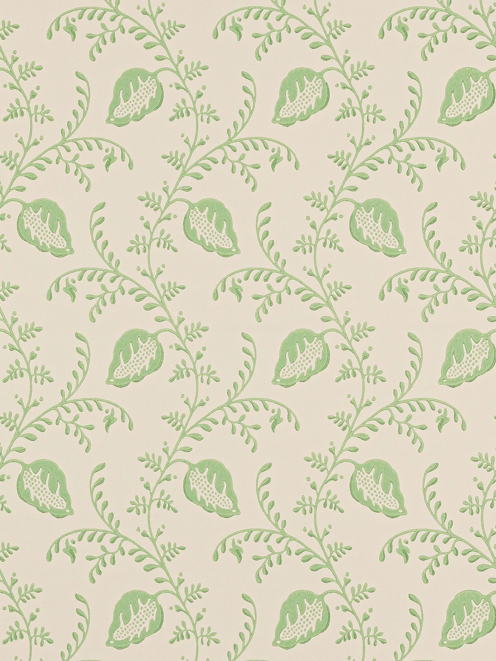 A trailing wallpaper featuring stylised foliage and seedpods. The character of Felicity is enhanced by the choice of surface printing which creates appealing raised textures evocative of block printing.
