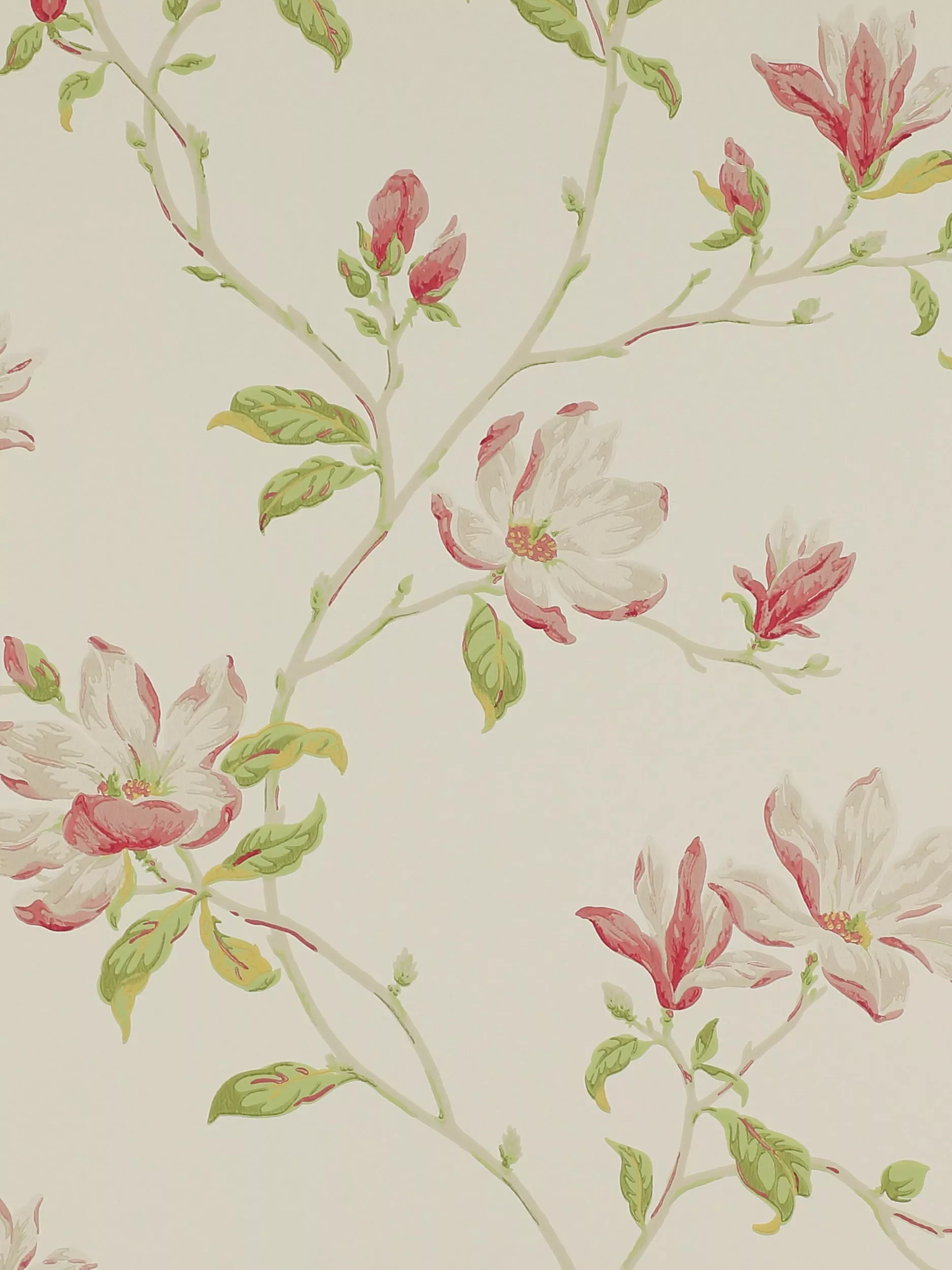 Beautiful surface printed floral wallpaper with a spacious trail of magnolias.