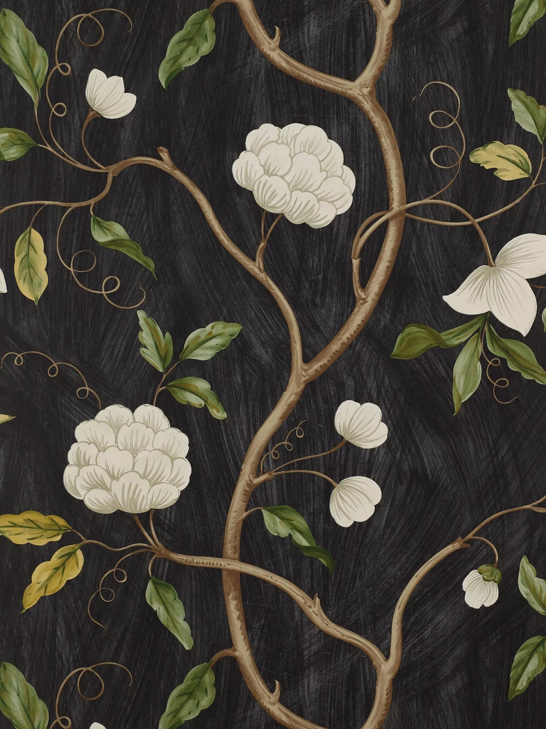 A graceful and painterly tree design, inspired by a paper from Drottningholm Court Theatre in Sweden and given to Colefax and Fowler by the King of Sweden.