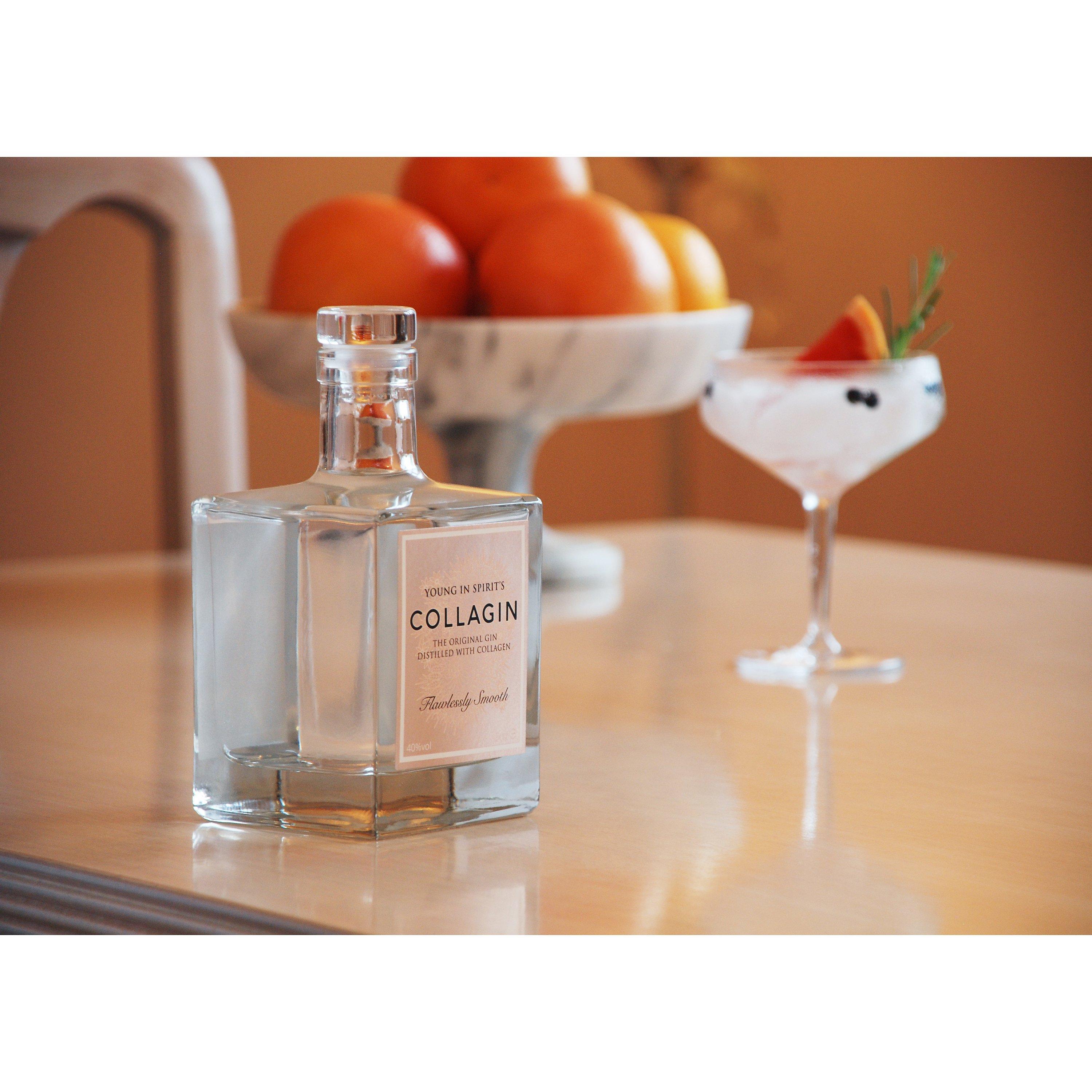 Deliciously smooth and impeccably fragrant, CollaGin is the original gin with added collagen, mixing the world of beauty and spirits into, one beautiful unison. Eleven delicate botanicals infuse each velvety drop, in a bewitching concoction of warm, earthy liquorice and floral notes of orris root, balanced by the clean taste of juniper and the gentle tang of fresh oranges.