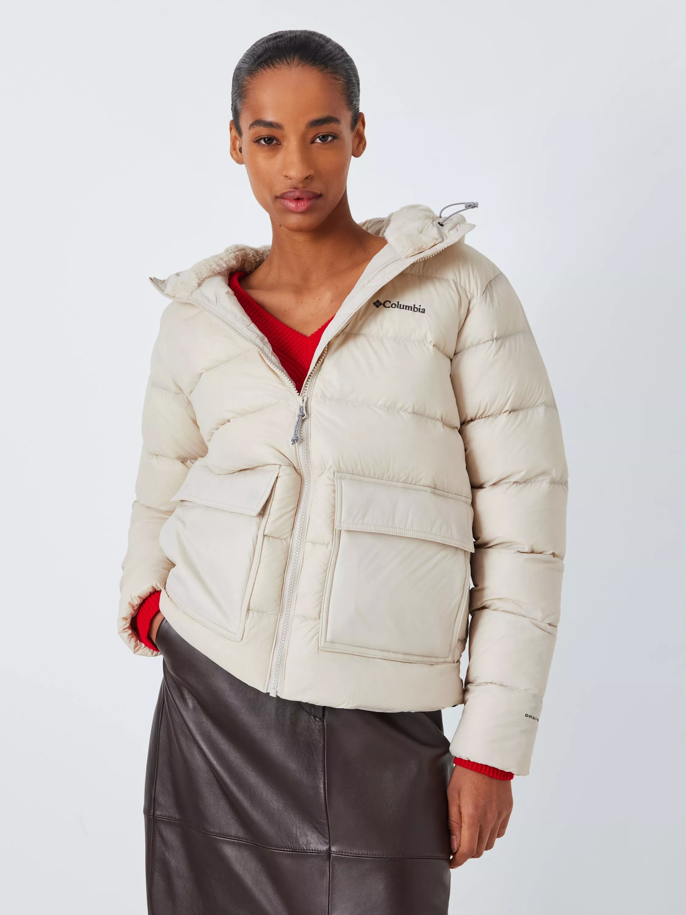 Stay warm and cosy this winter in this Columbia puffer jacket. Packed full of down insulation, with an advanced thermal reflective lining; designed to retain the heat. The plush lined hood and hand-warmer pockets offer extra comfort on cold winter days. Elasticated cuffs, adjustable hood and a drawcord hem help to seal in warmth. A stain resistant finish protects from splashes and spills, while dual entry pockets offer plenty of places to stow your belongings.