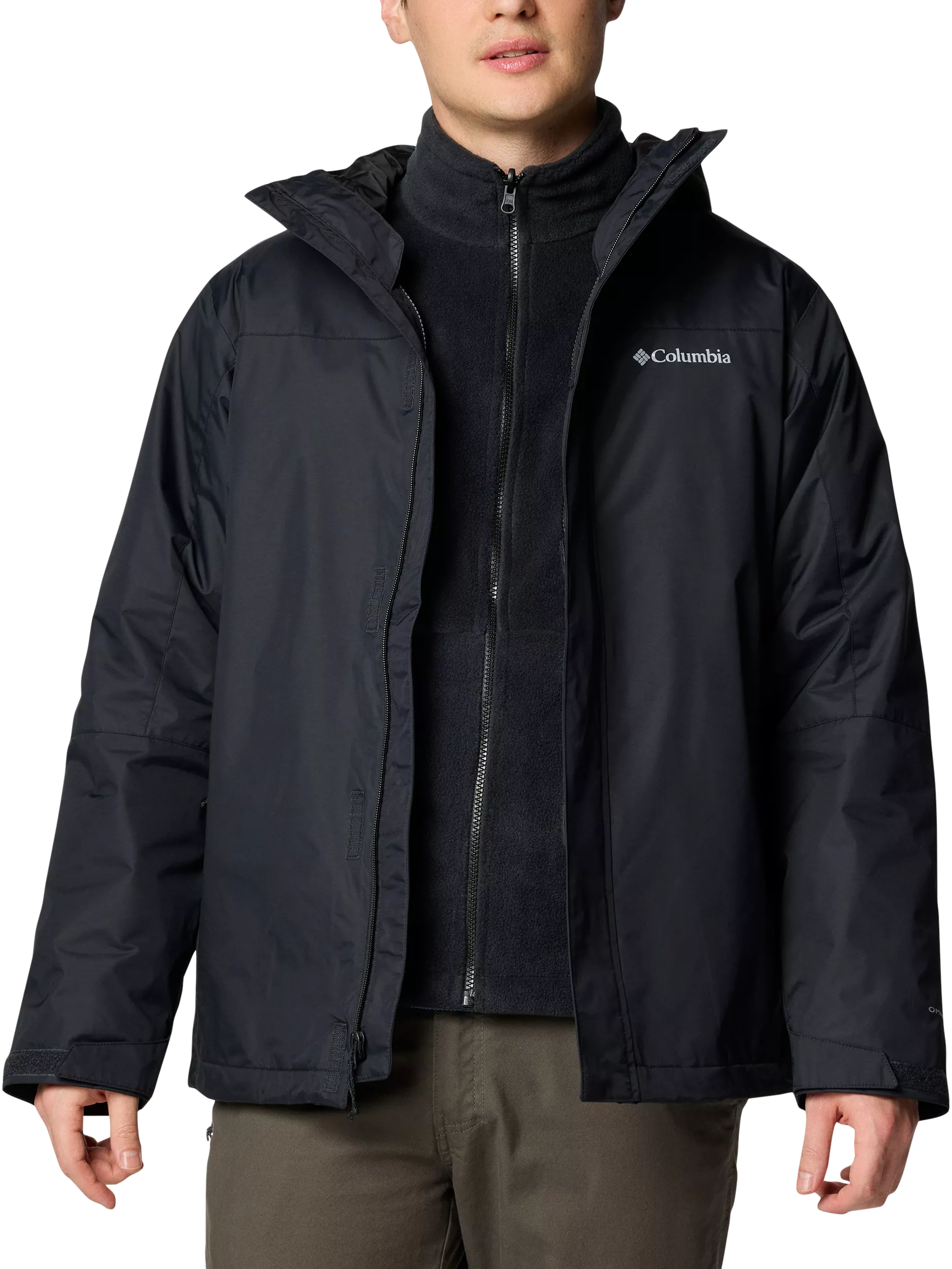 Take to the trails in flexible comfort in this Columbia men's 3-in-1 waterproof jacket designed to offer weather protection and warmth when you need it. The waterproof breathable shell is seam-sealed to keep you dry even when the rain comes down, whilst the cosy removable fleece liner provides a layer of warmth when temperatures drop. The versatile 3-in-1 design means you can wear the waterproof shell in the rain, the fleece layer for warmth, or layer them both for optimum protection. The drawcord adjustable hood, hem and cuffs can be cinched to keep out the elements whilst the zippered security pocket and hand pockets keep your essentials close whilst you're on the move.