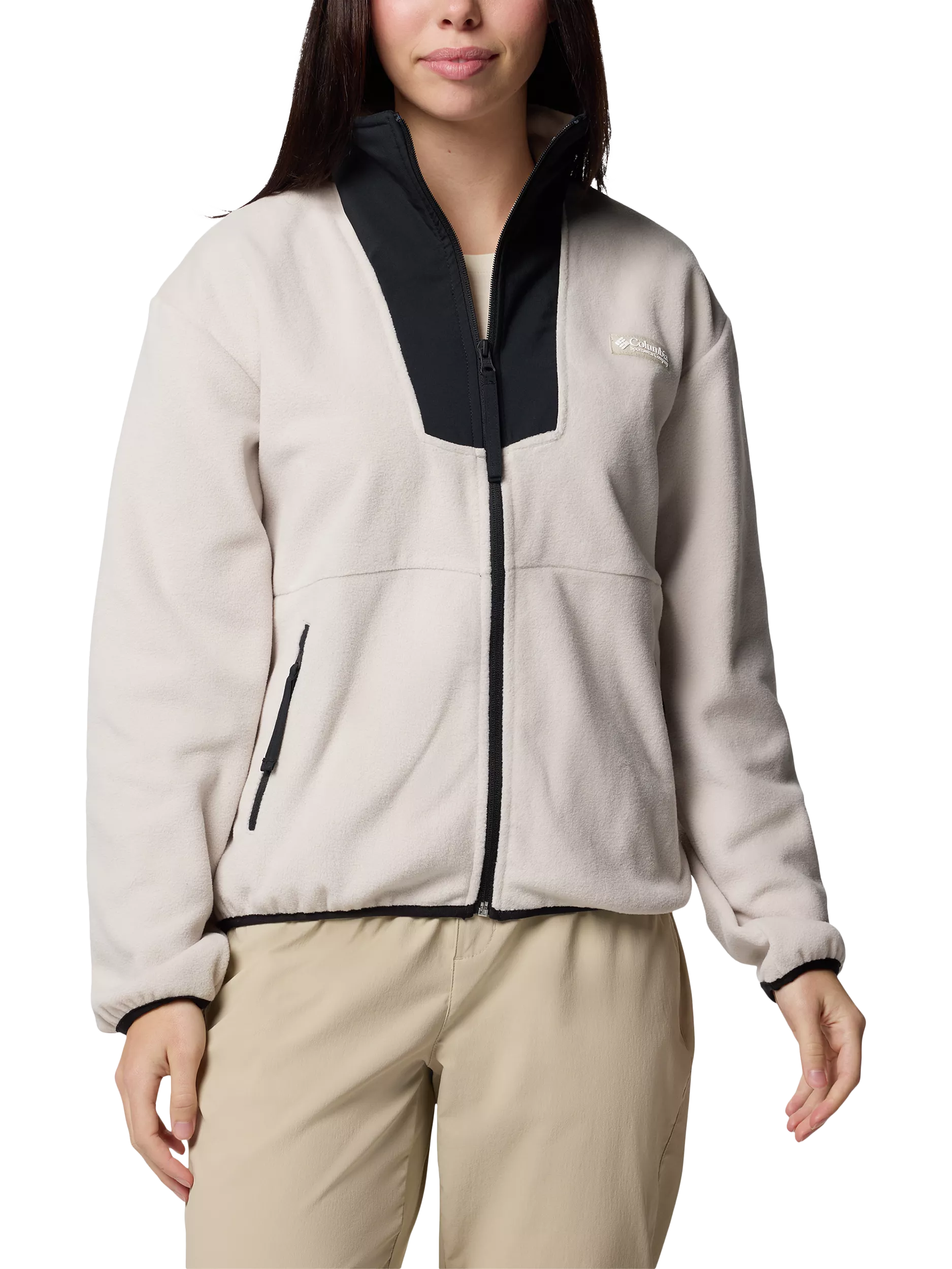 Whether you're commuting to work or chilling around the campfire, this comfy Columbia women's fleece jacket, made from 100% recycled polyester is a casual classic. The stretch binding at the collar, cuffs and hem provides a comfort fit and it has handy zippered pockets.