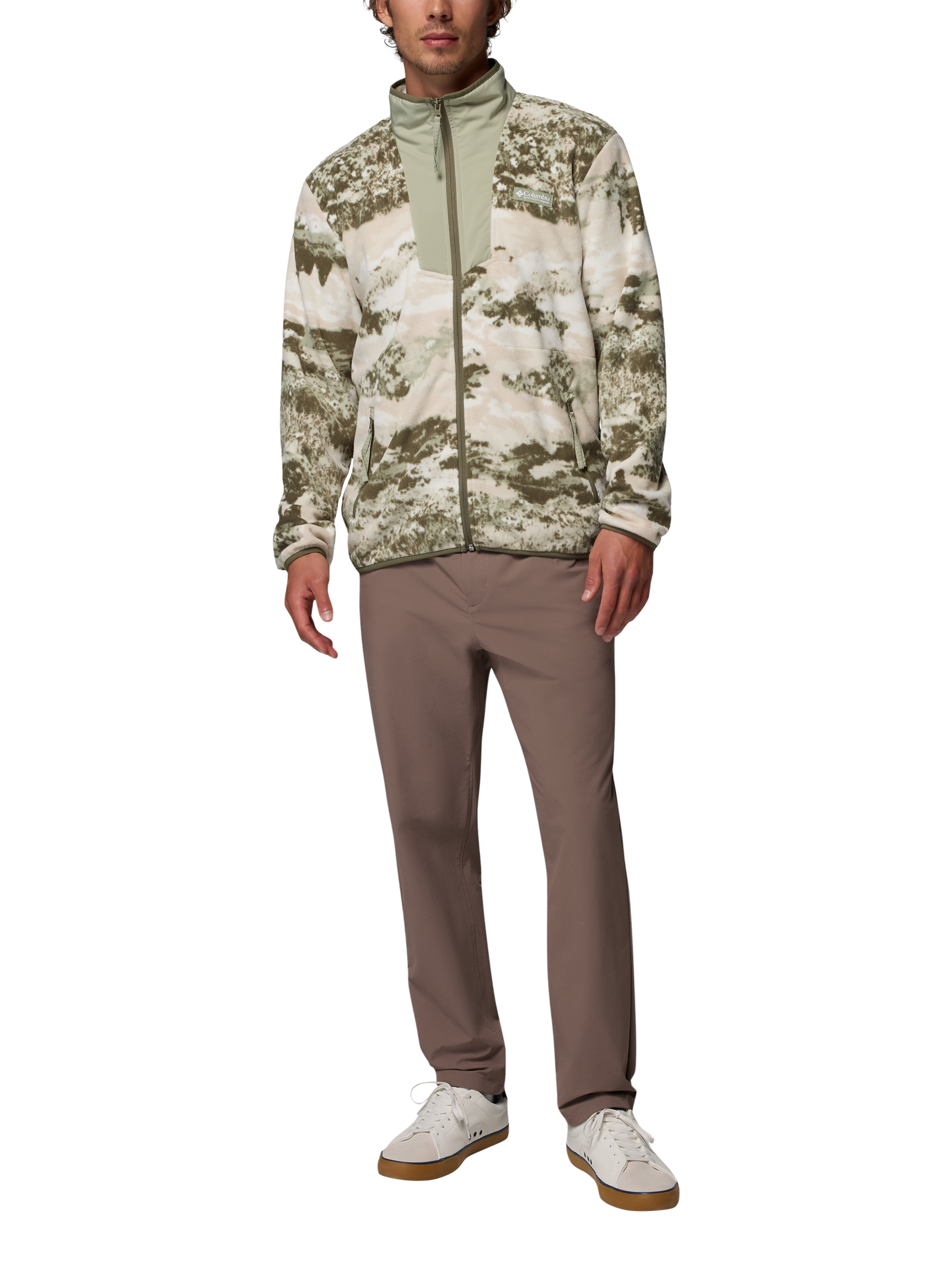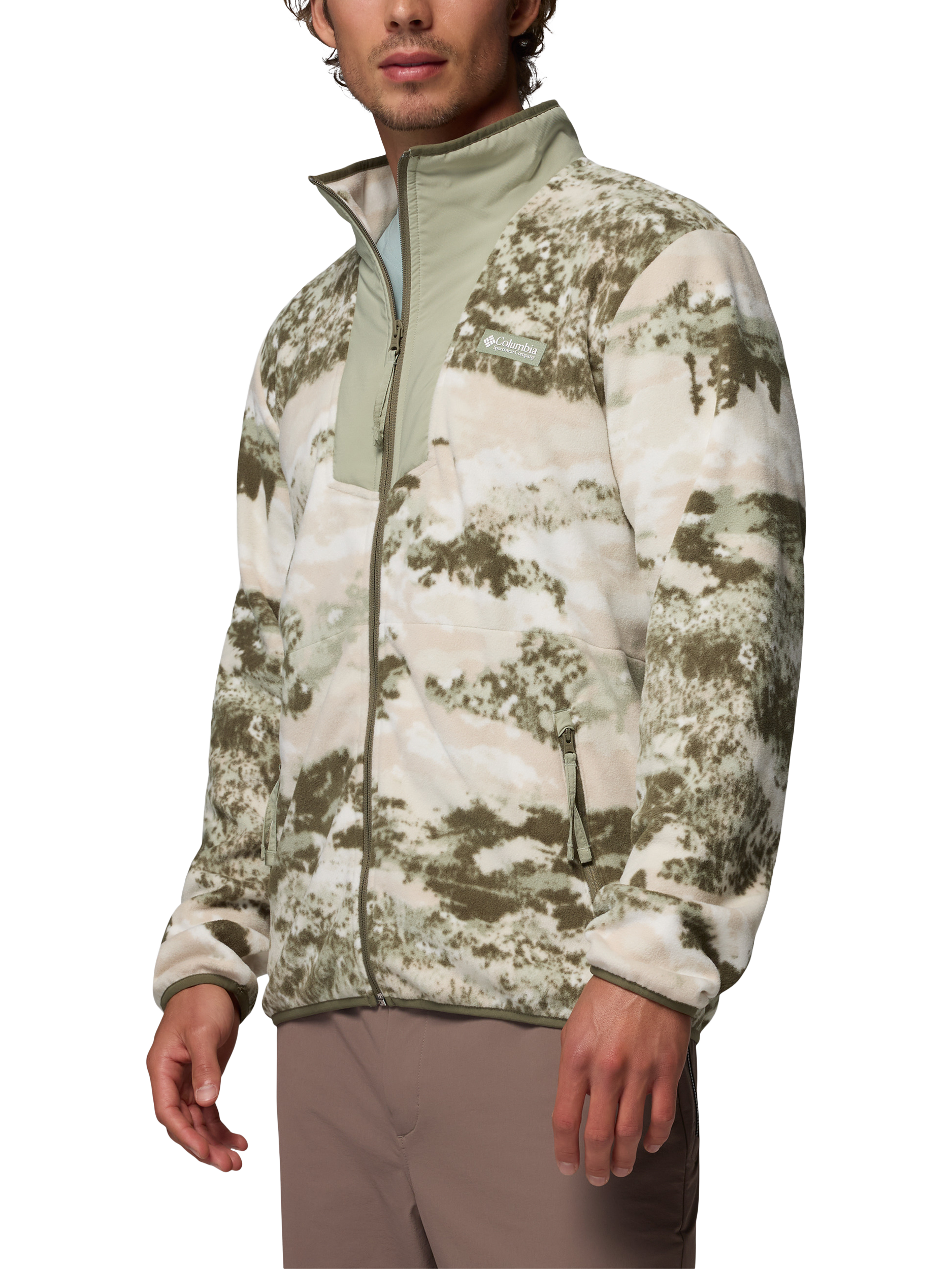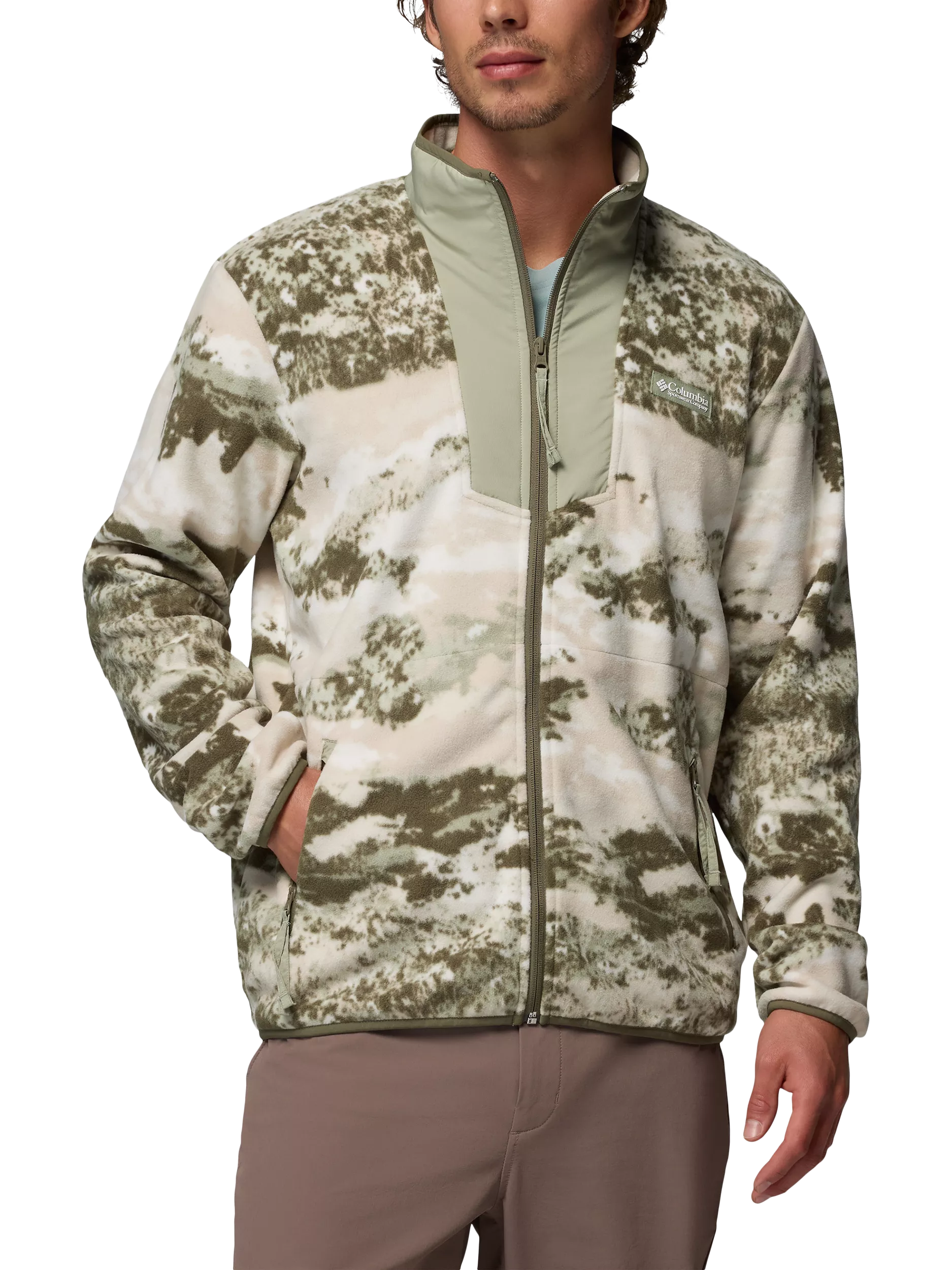 Whether you're commuting to work or chilling around the campfire, this Columbia men's printed fleece jacket is a casual classic. The stretch binding at the collar, cuffs and hem provides a comfort fit and it has handy zippered pockets.