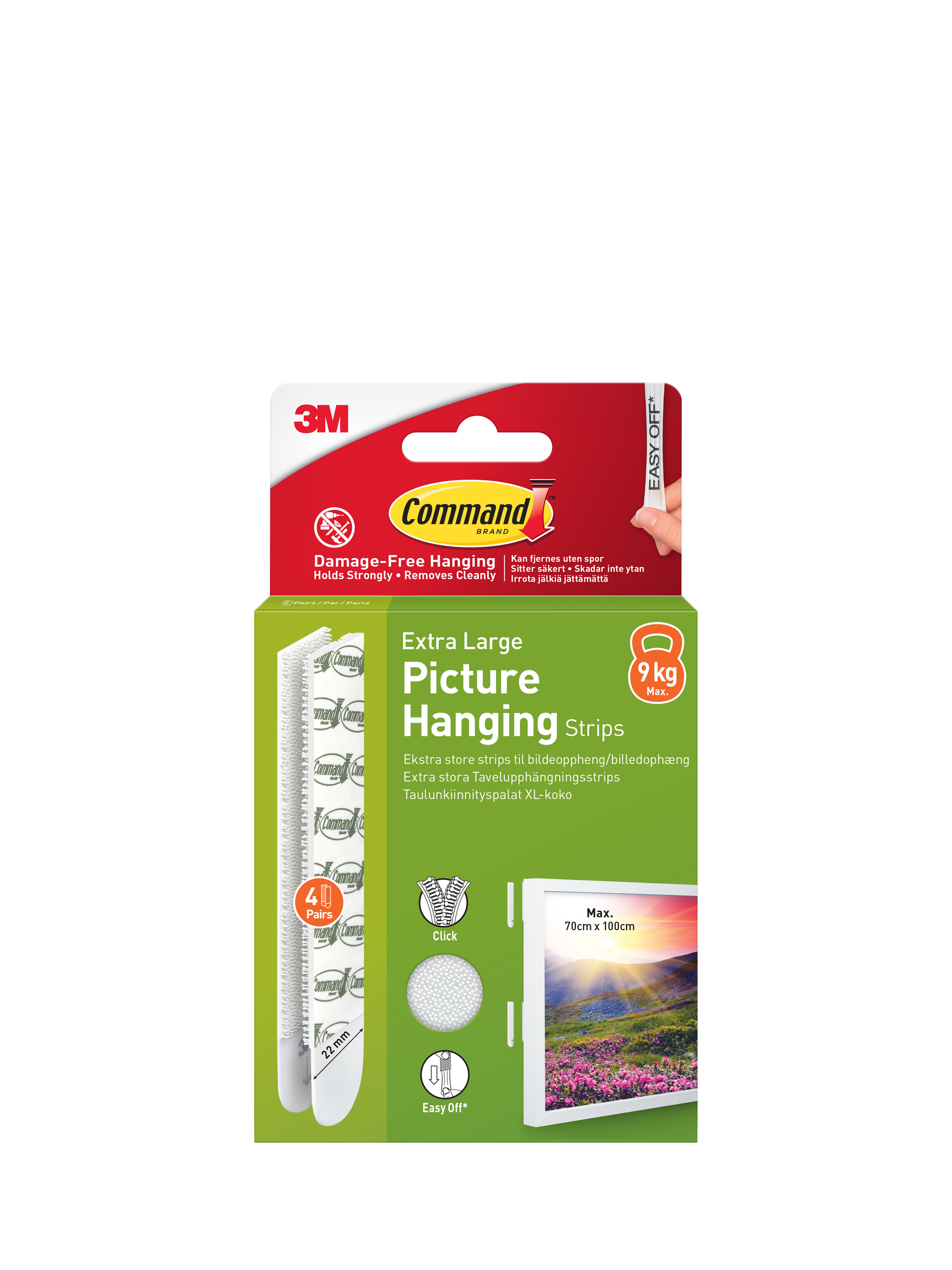 Pack contents: Four pairs of extra-large strips for pictures up to 70 x 100cm and up to 9kg in weight.