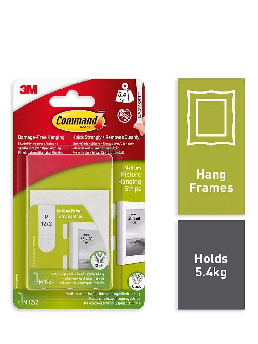 Pack contents: 12 pairs of medium strips for pictures up to 45 x 60cm and up to 5.4kg in weight.