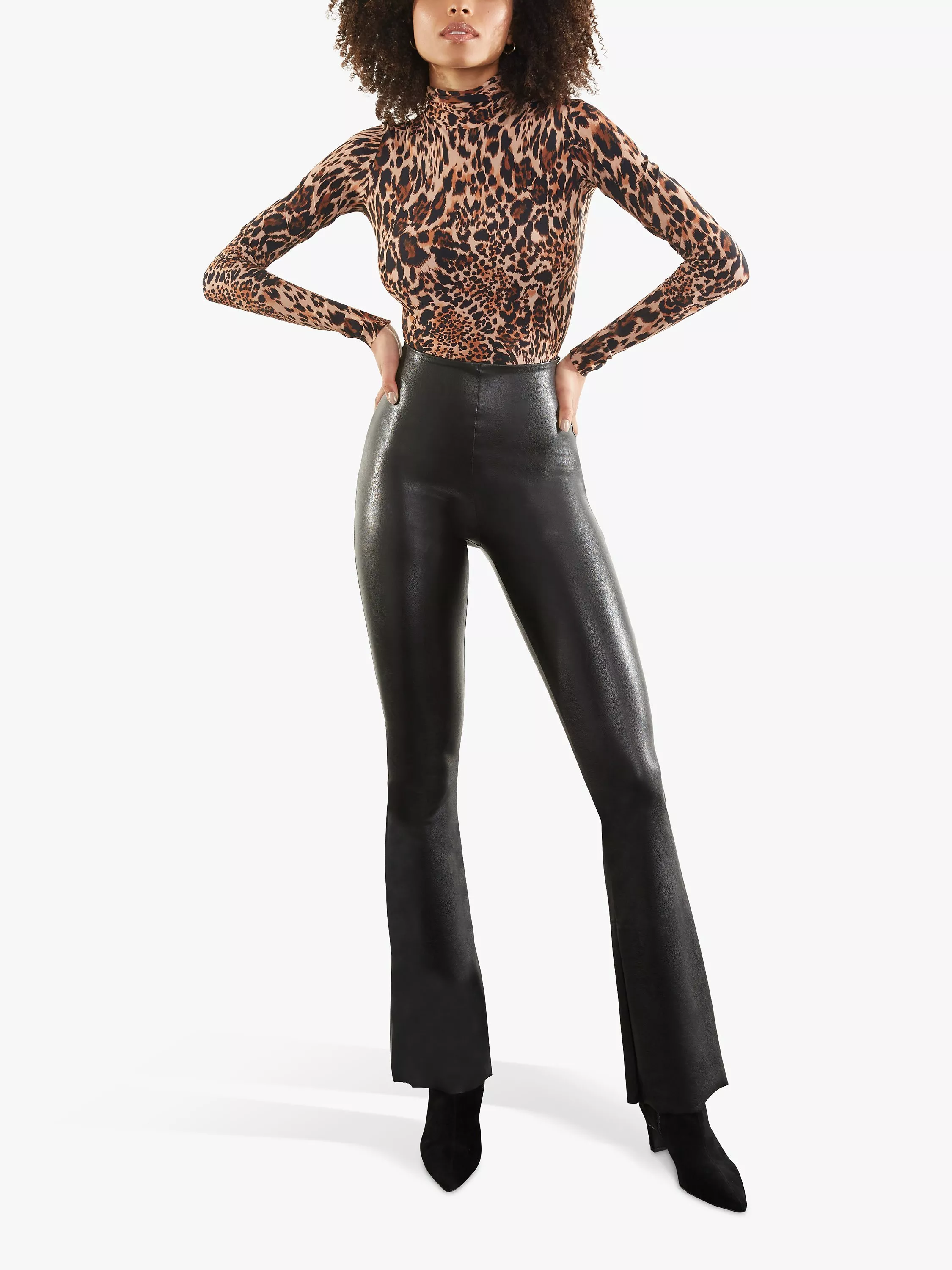 Commando's Faux Leather Flare Leggings feature a signature internal smoothing waistband made from a firming fabric that doesn't bag or sag. The faux leather is soft but flexible with four-way stretch and recovery.