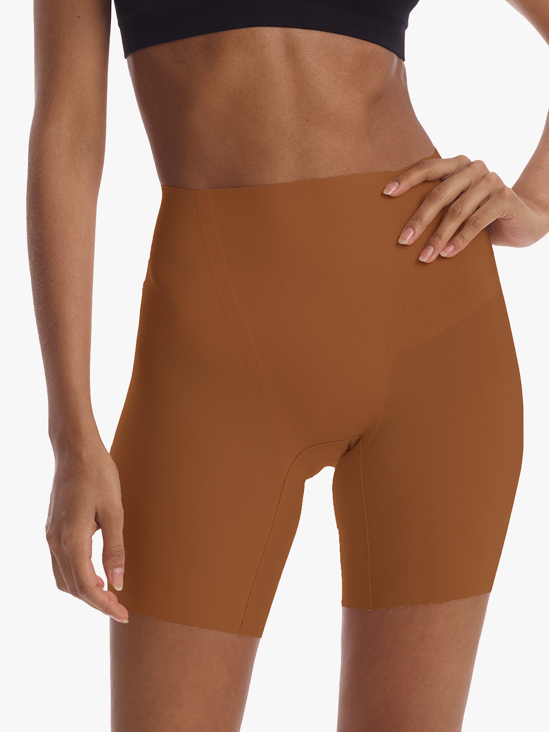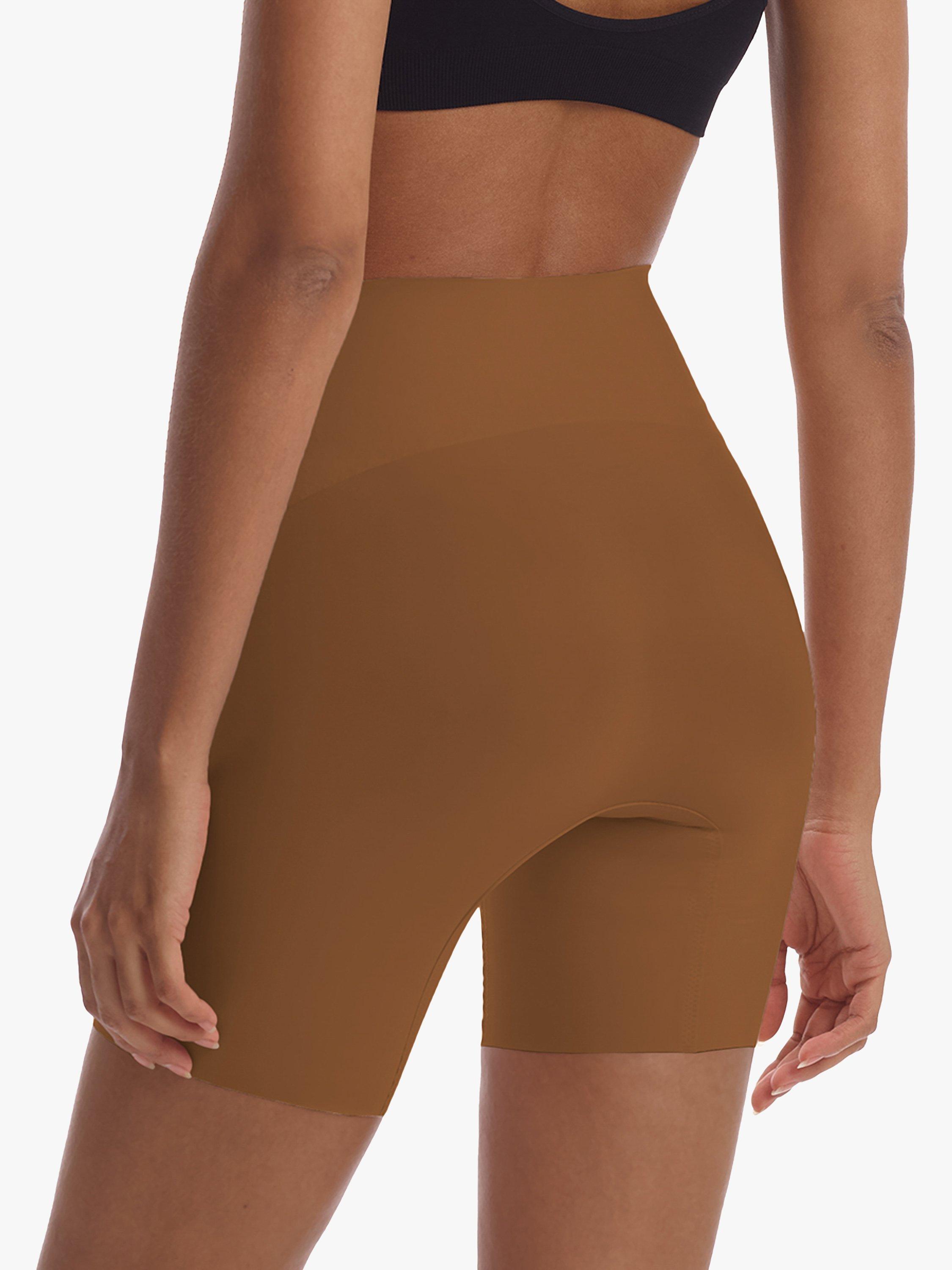 This shapewear style offers extra-targeted smoothing properties through zoned compression panels, while still offering a seamless and smooth undergarment effect.