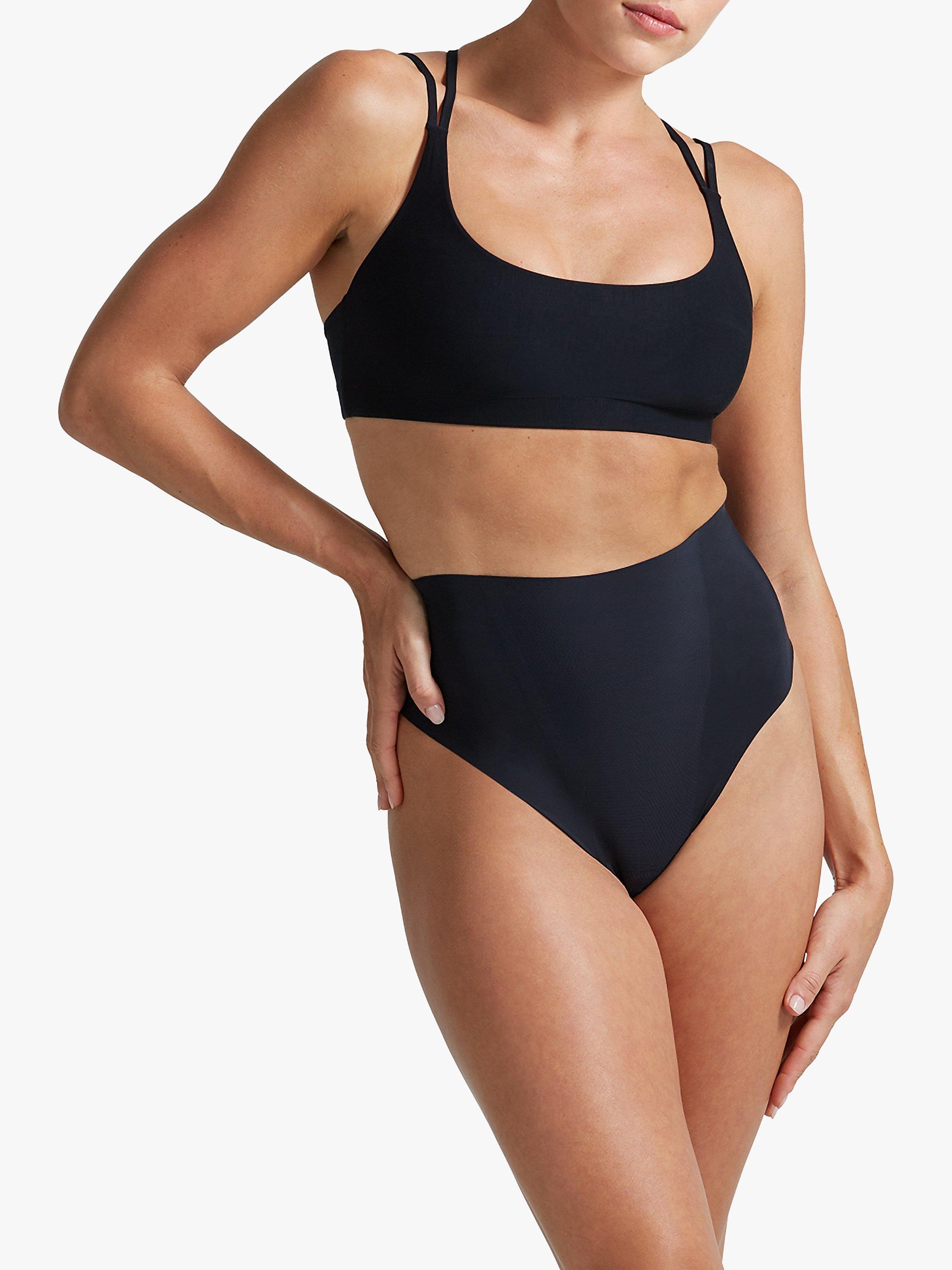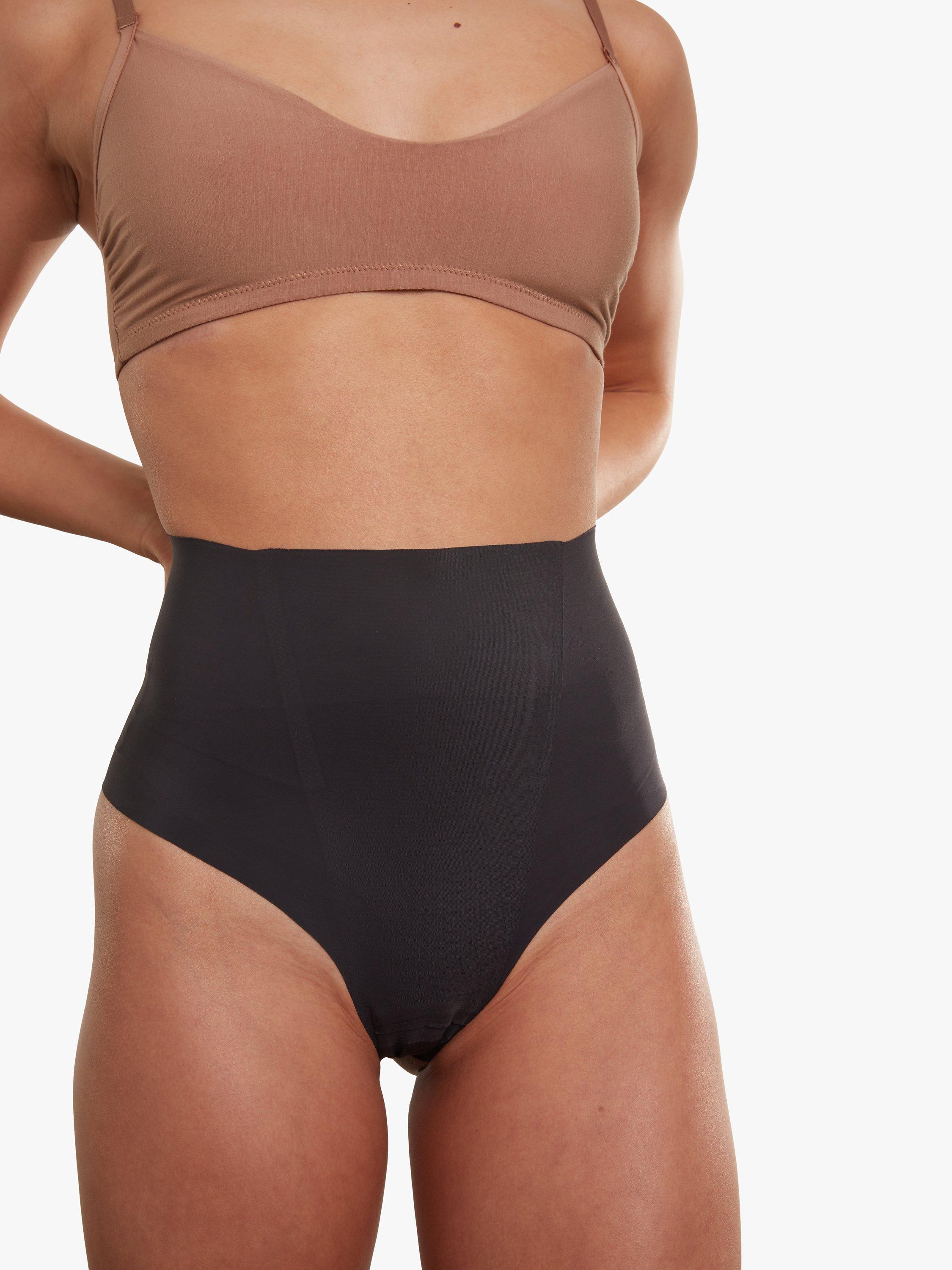 Commando's Zone Smoothing thong features a super-high rise, signature raw-cut hem, and light-medium compression. This shapewear style offers extra-targeted smoothing properties through zoned compression panels, while still offering a seamless and smooth undergarment effect.