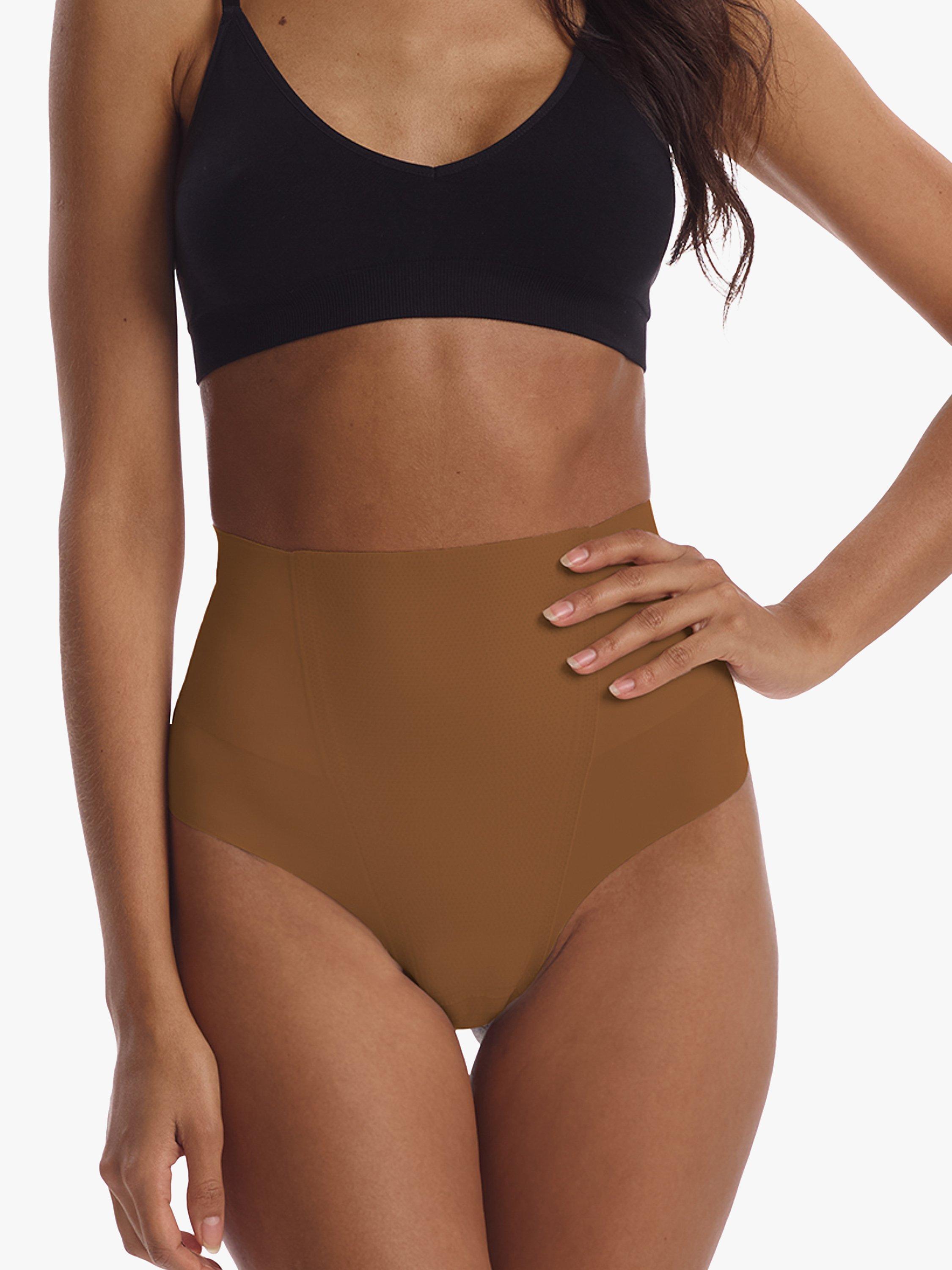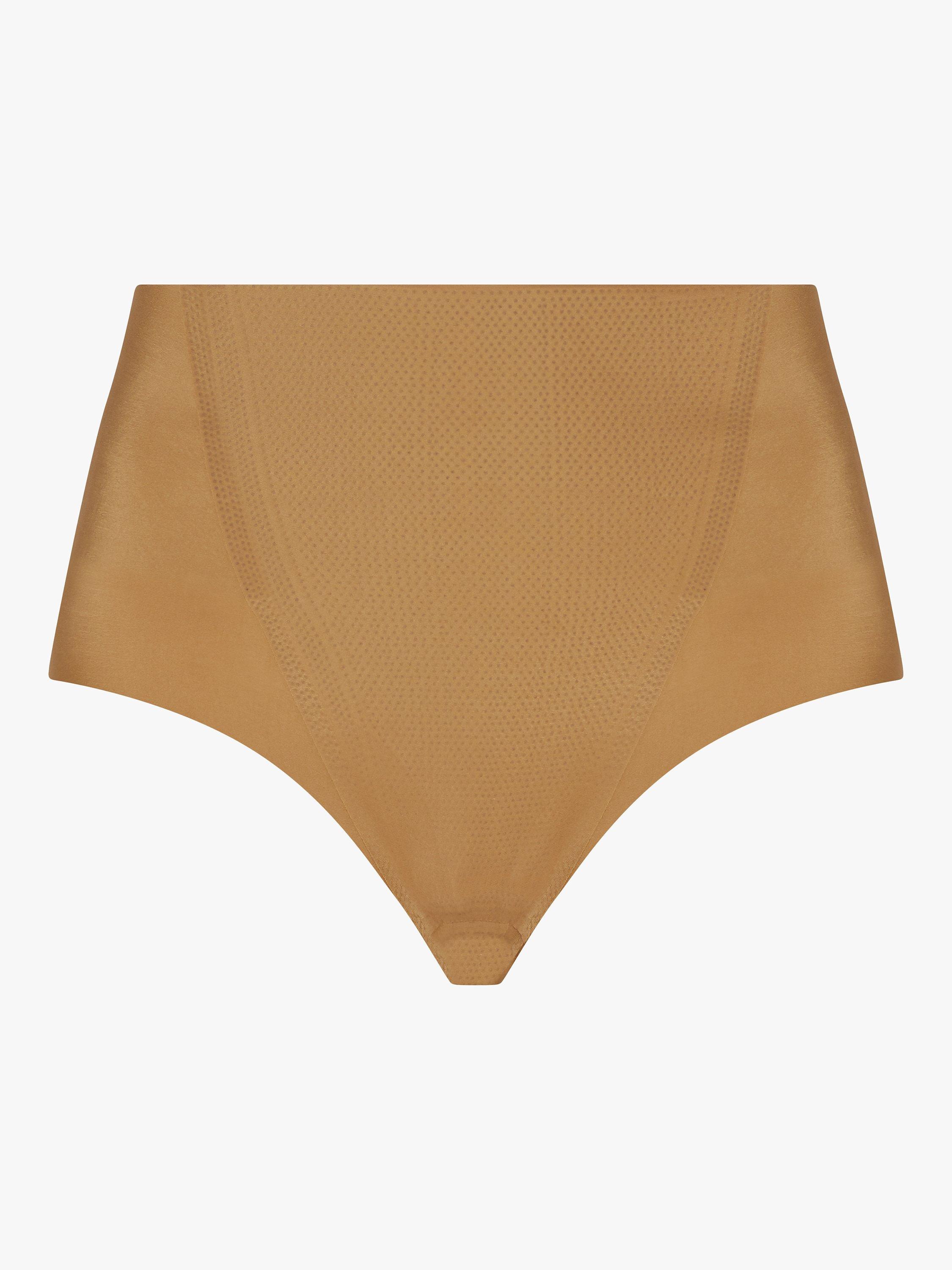 Commando's Zone Smoothing thong features a super-high rise, signature raw-cut hem, and light-medium compression. This shapewear style offers extra-targeted smoothing properties through zoned compression panels, while still offering a seamless and smooth undergarment effect.