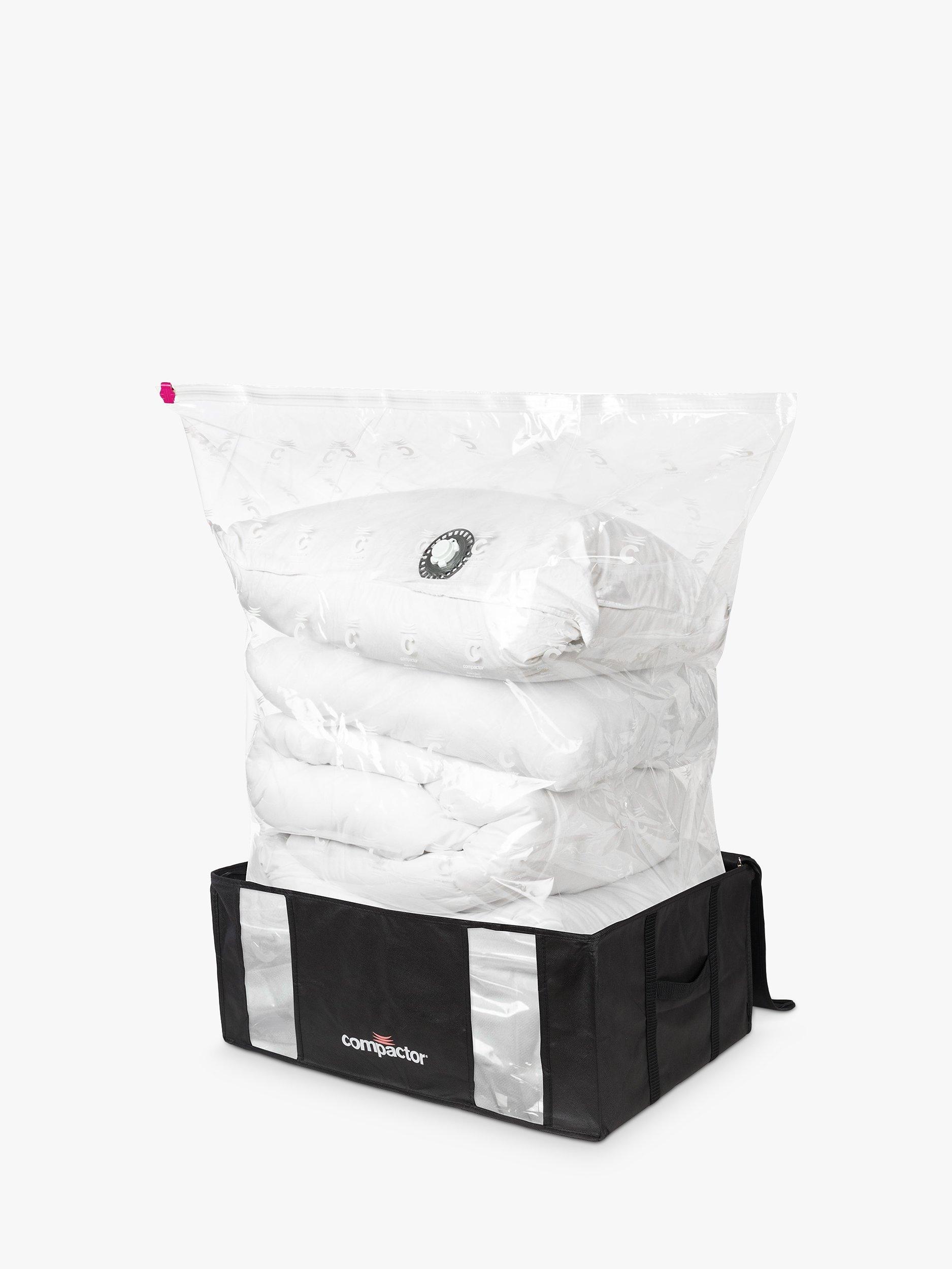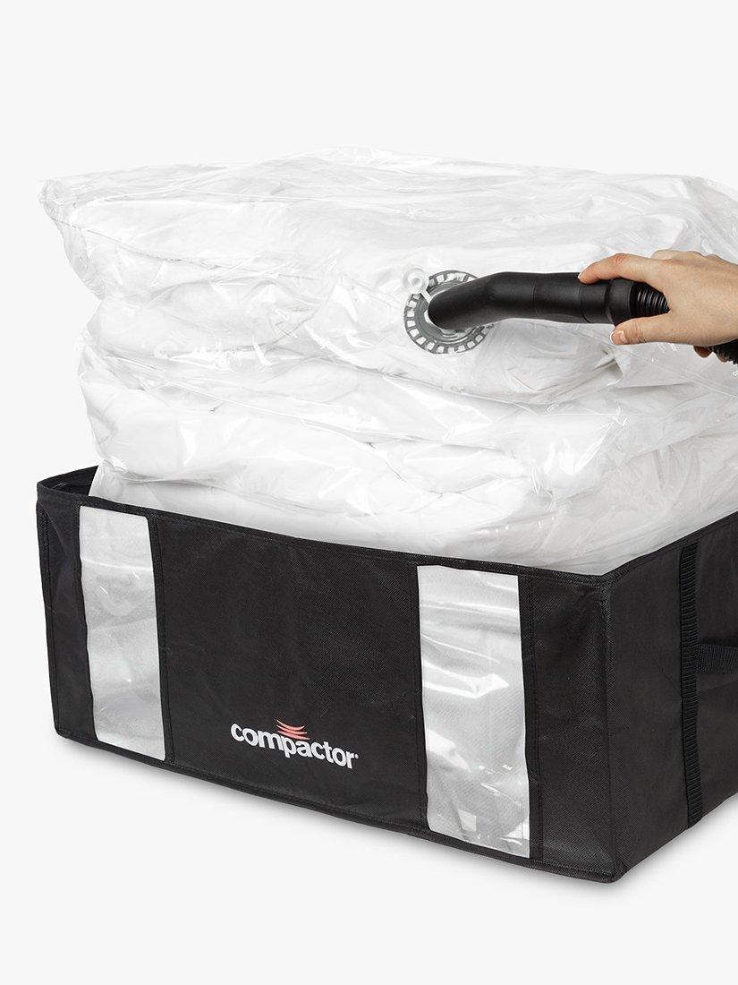 This all-in-one, semi-rigid storage box has a built-in, space-saving vacuum bag to create up to 75% more space in your cupboards and wardrobes, Ideal for storing clothes, duvets and household linen it keeps contents protected and in perfect condition.