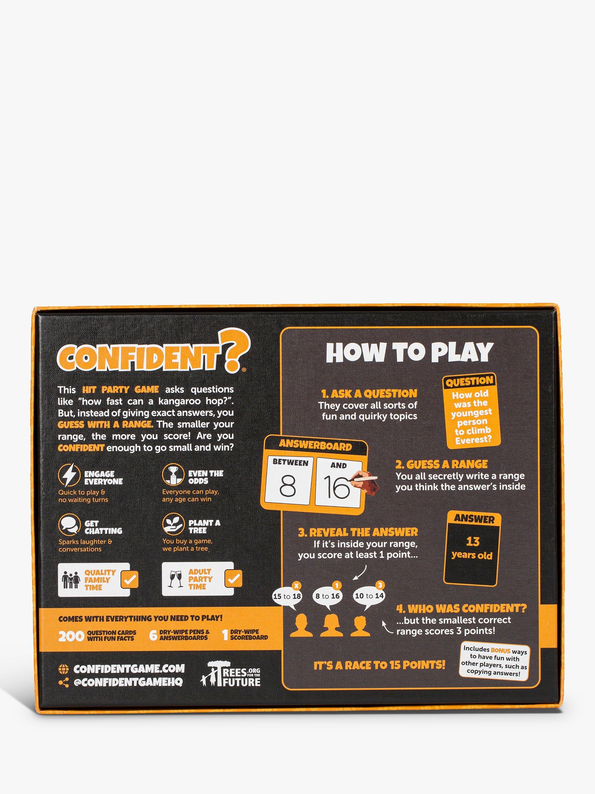 Confident is different because instead of answering questions with one answer, you give a range. The aim is to get the answer in your range, while also getting the smallest range compared to the other players. So, you don't need to be a trivia buff to win, you'll just need to balance being correct and being confident: go small or go home! Use your special powers once per game to copy a friend's answer, cause some havoc with a swap or go for double points if you're feeling confident.
