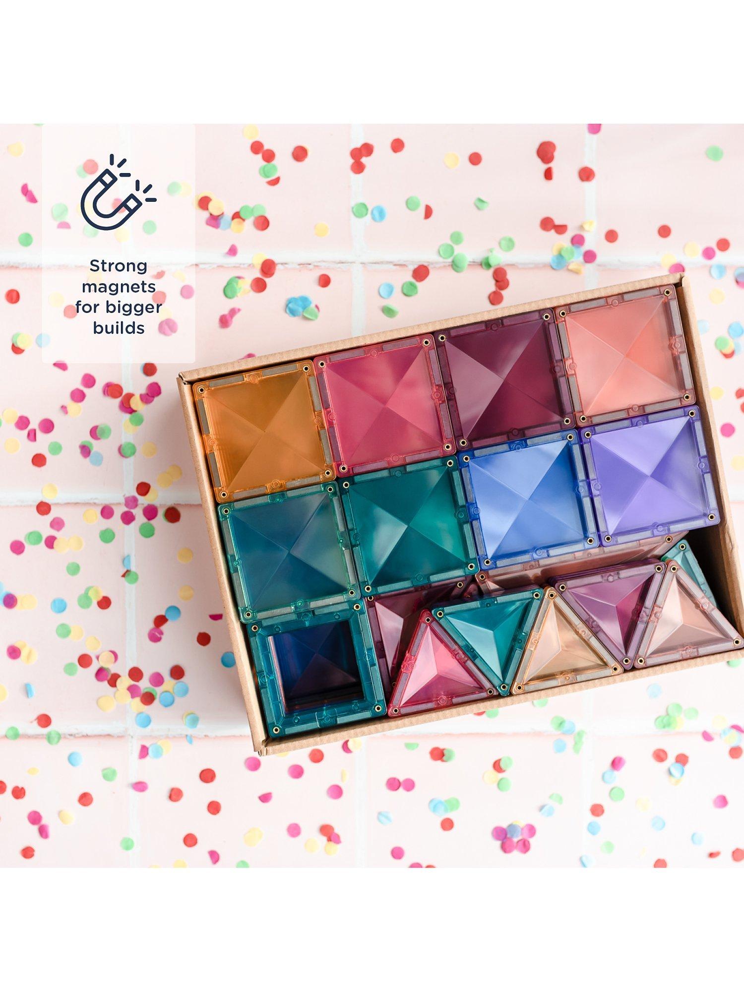 Encourage hours of unlimited creative, fun and learning through PLAY with the Connetix 120 Piece Pastel Creative Pack. Featuring a variety of the Connetix magnetic tile shapes in 8 stunning pastel colours, this pack is the perfect starter option for family fun, building BIGGER Connetix creations and expanding the range of colours your children recognise! Perfect for both independent play AND fun with friends and family, the Pastel Creative Pack encourages STEAM learning while developing fine and gross motor skills. Delight in the excitement as your children unleash their imaginations, creating even bigger castles, rockets, towers, coin drops, bridges and mandalas, and explore patterns and shapes, create colour sorting boxes, plus so much more. The Pastel Creative Pack is perfect for developing perseverance and resilience as children design larger scale builds, testing the limits of their imagination. Connetix are a high-quality open-ended toy that will grow WITH your child as they learn and their play becomes more complex.