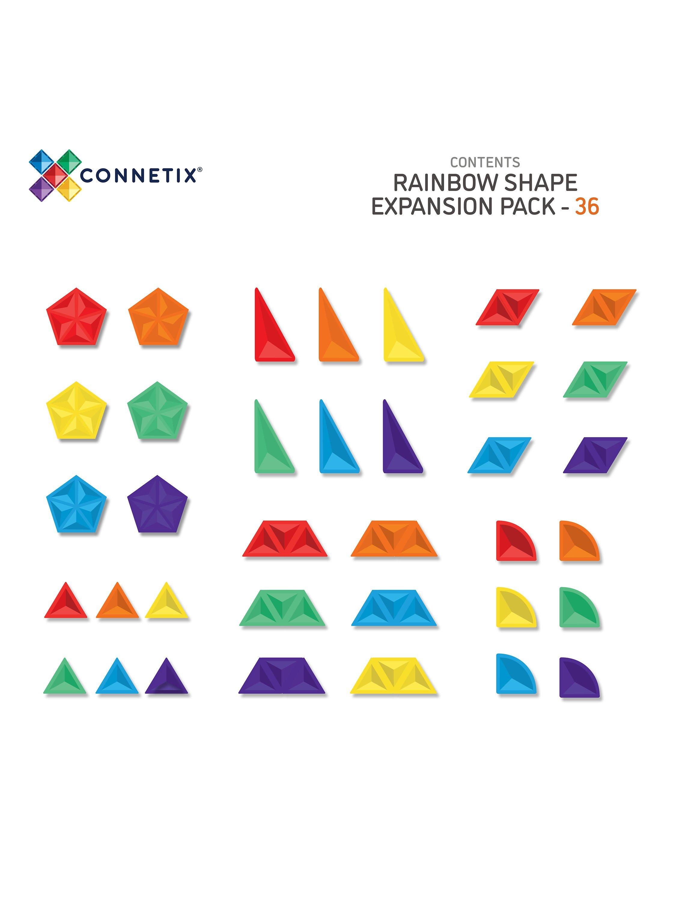 Discover a new world of shapes, design and STEAM learning with the 36 Piece Rainbow Shape Expansion Pack. Featuring our vibrant rainbow colours, this pack introduces large equilateral triangles, right-angle triangles, quarter circles, pentagons, trapezoids, and rhombis to your Connetix play! Carefully curated to engage children in creative play and support STEAM learning, the Rainbow Shape Expansion Pack is perfect for extending mathematical understandings, progressing engineering skills, and sparking imaginations. The ideal open-ended quality toy, Connetix grows WITH each child as they learn and their play becomes more complex.