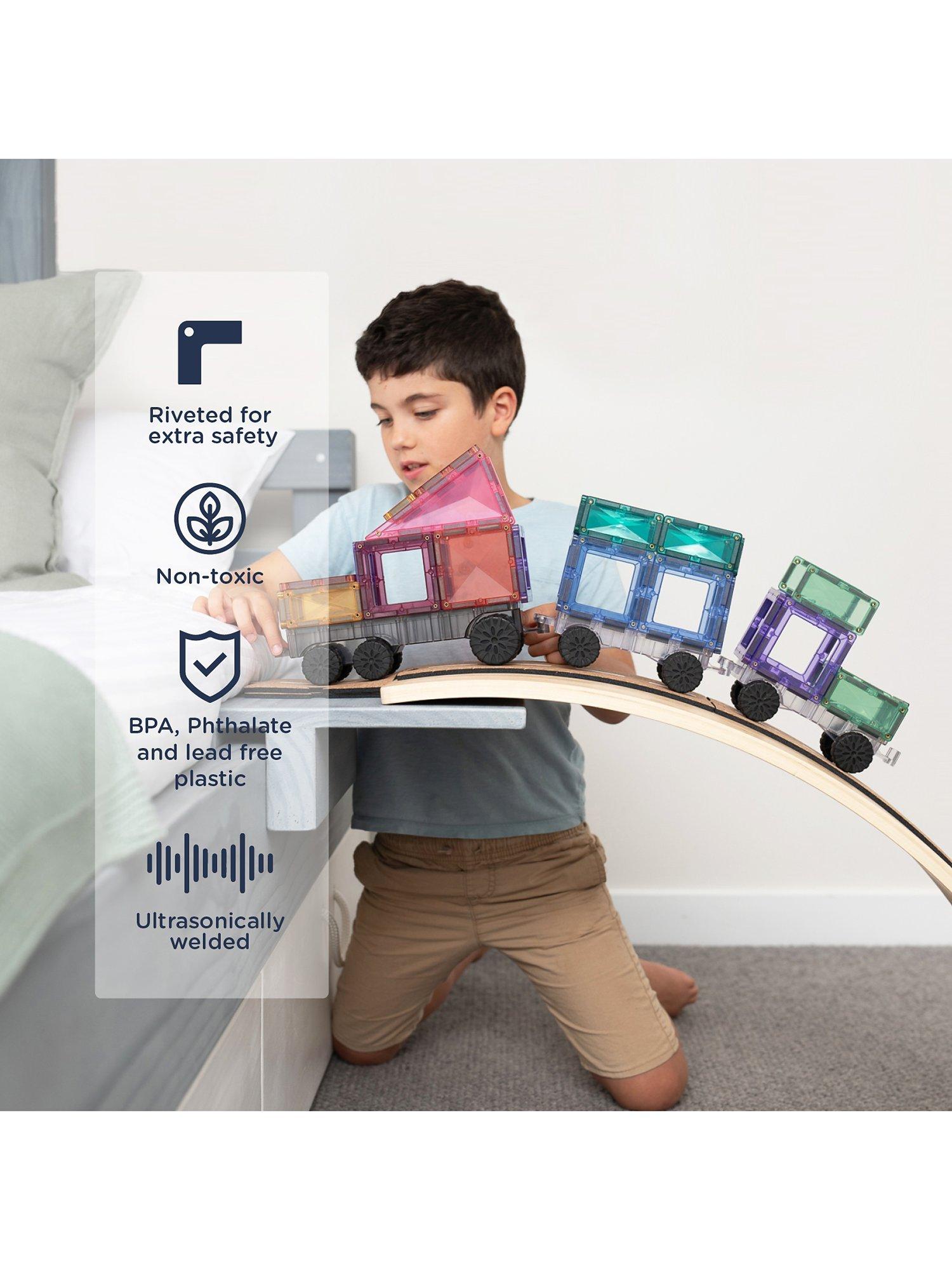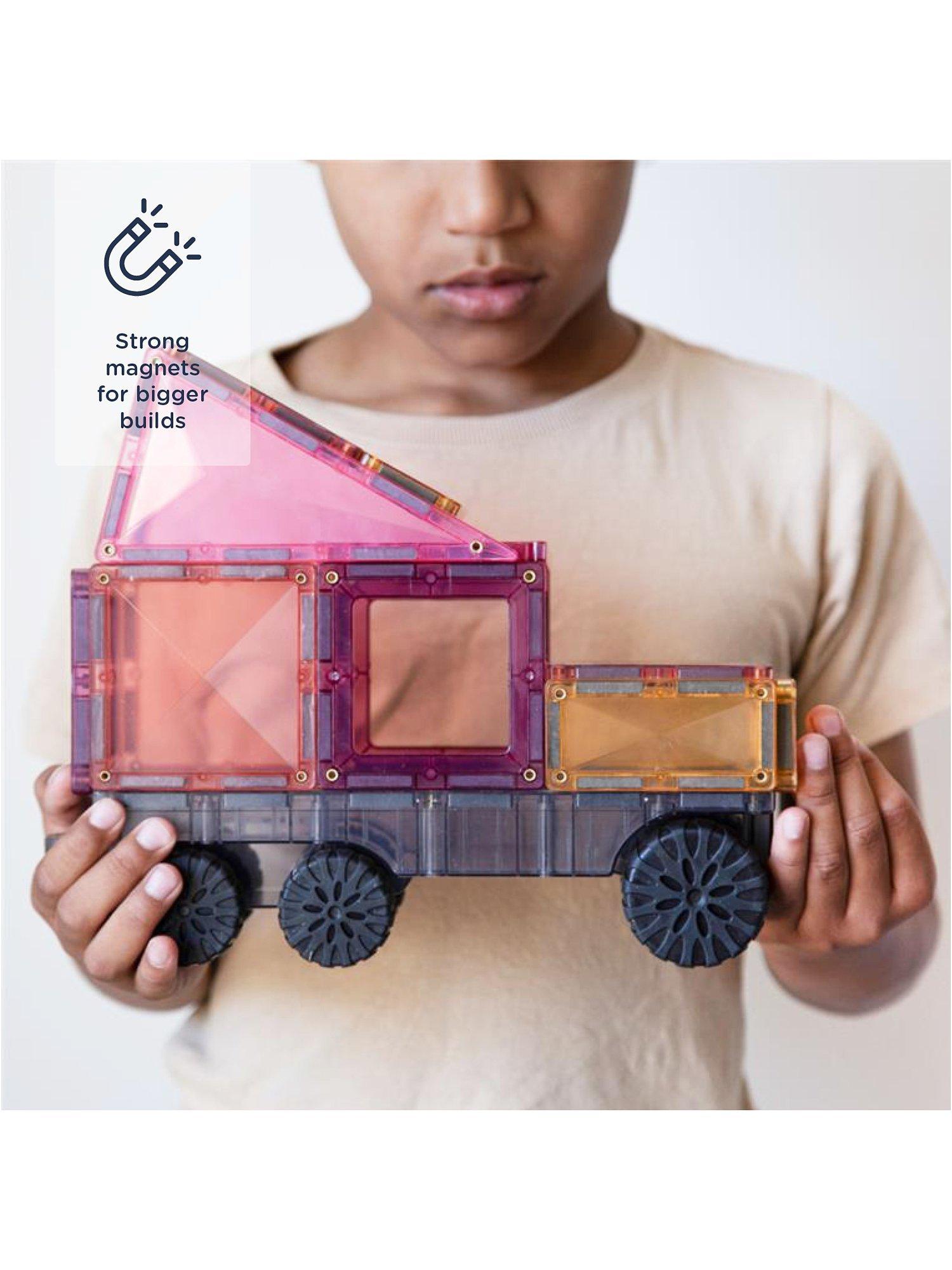 The 50 Piece Pastel Transport Pack will also expand the range of colours children can explore - eight pastel colours in hues of pink, berry, peach, mint, emerald, lemon, violet and sapphire. Brilliant for encouraging hours of STEAM learning through play as children navigate magnetism, shape and colour as they create and build.