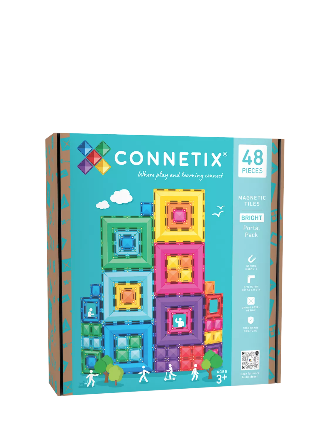 Connetix tiles have a bevel design that provides added strength while offering clear refractions. Combined with strong magnets, Connetix allow children to build bigger and expand the possibilities of construction play.