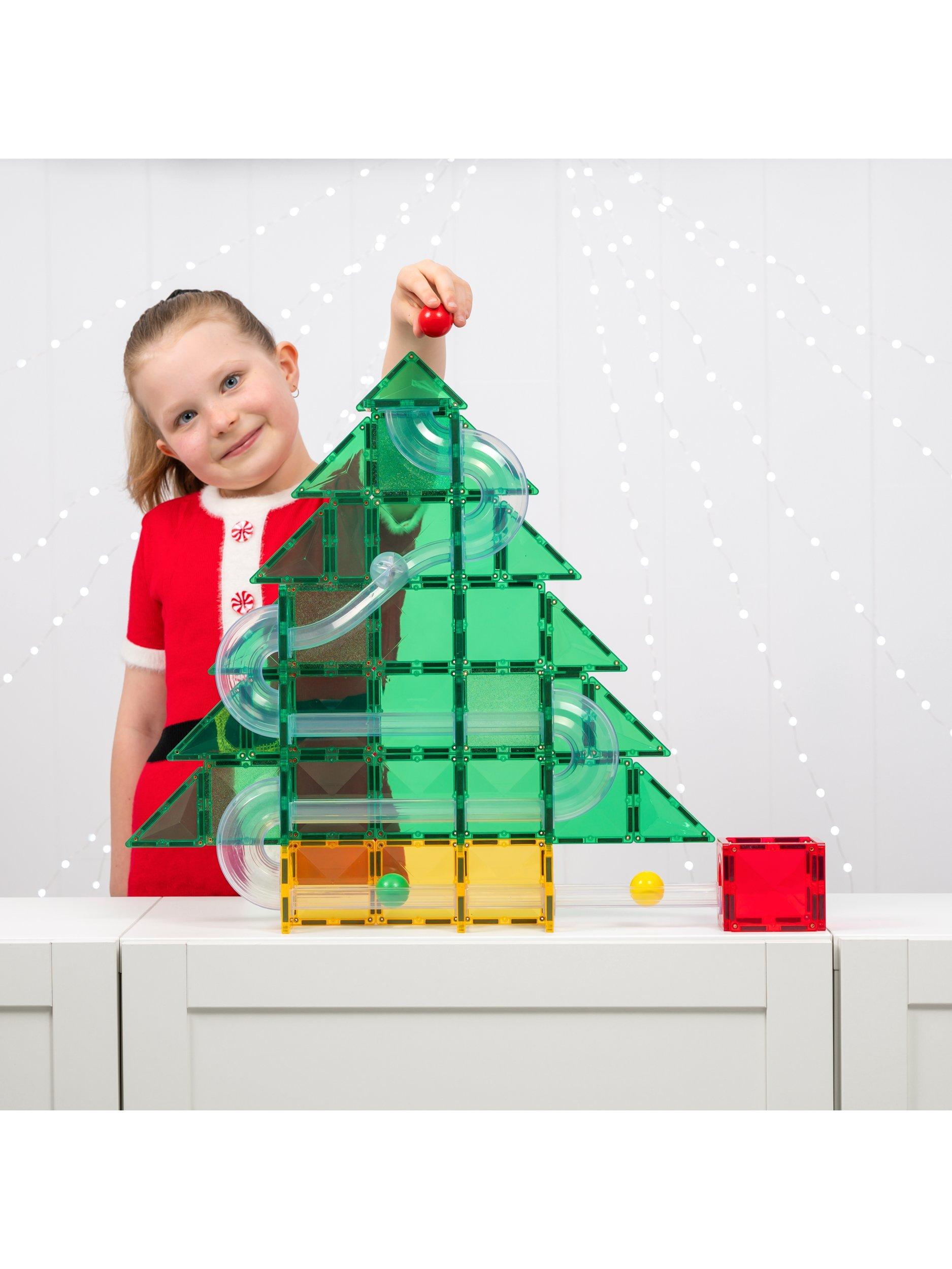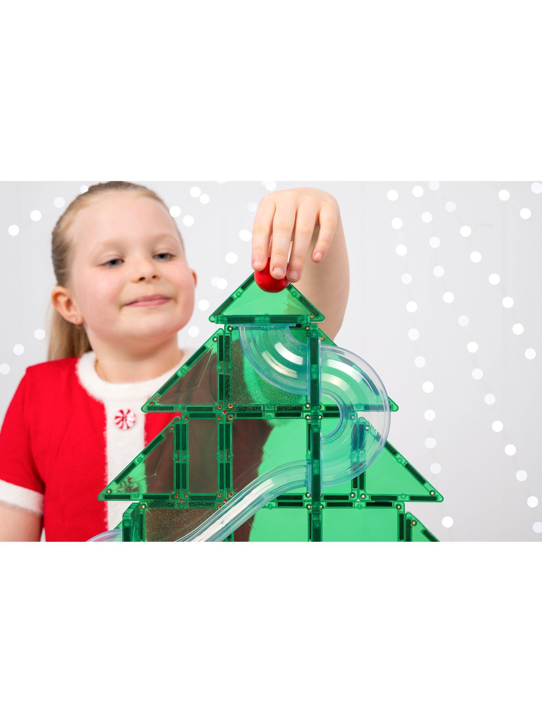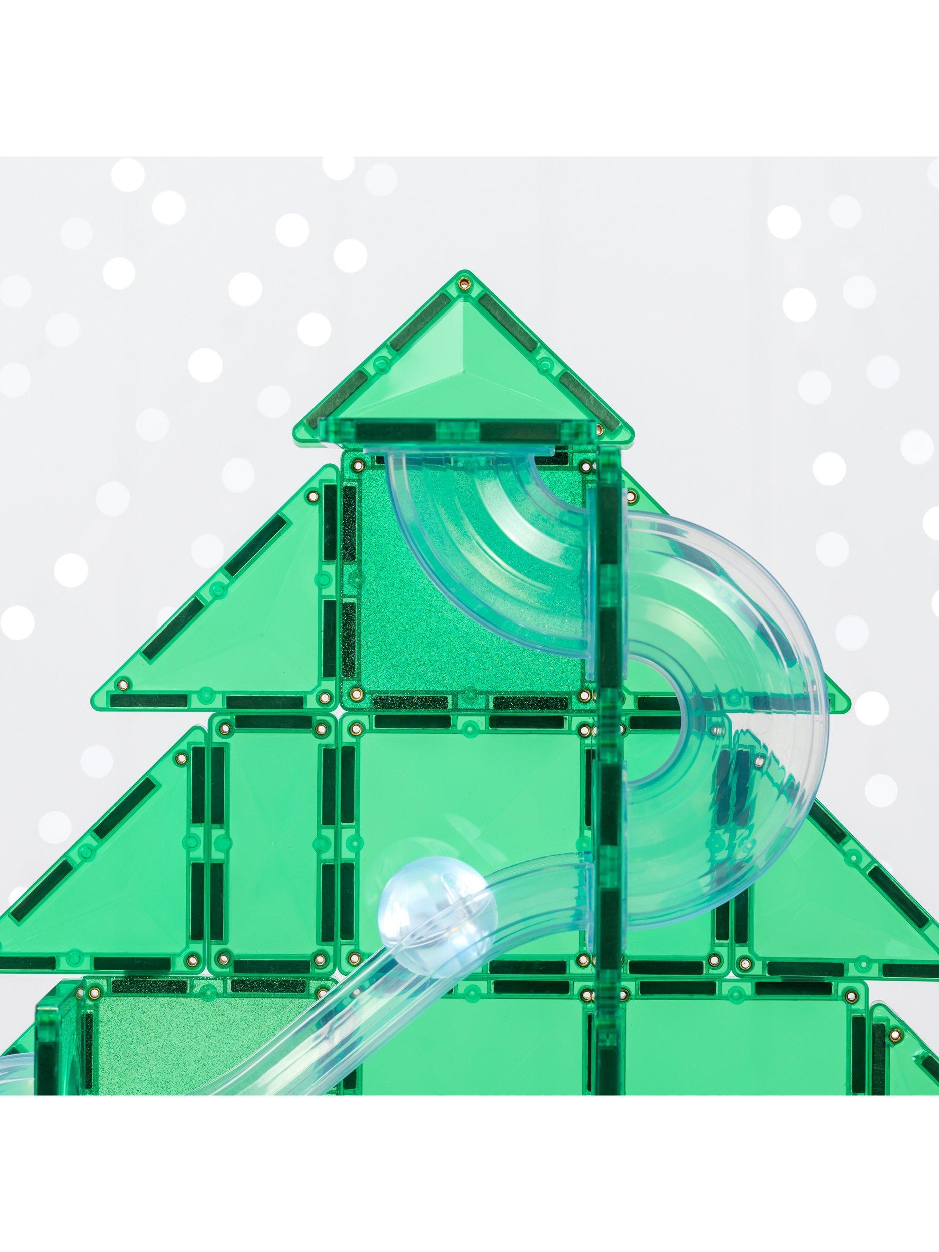 Unwrap hours of open-ended play and learning with the Christmas Ball Run. This limited-edition pack features exclusively designed clear-fluted tubes in an exciting range of pieces, including straights, slides and spirals to bring the joy of whirling, twirling ball run play this festive season. Showcasing a variety of handpicked magnetic tile shapes and connector squares in the traditional Christmas colours of green, red and yellow, plus adding a touch of magic with a selection of green glitter tiles - this pack has everything you need to create a sparkling tree.