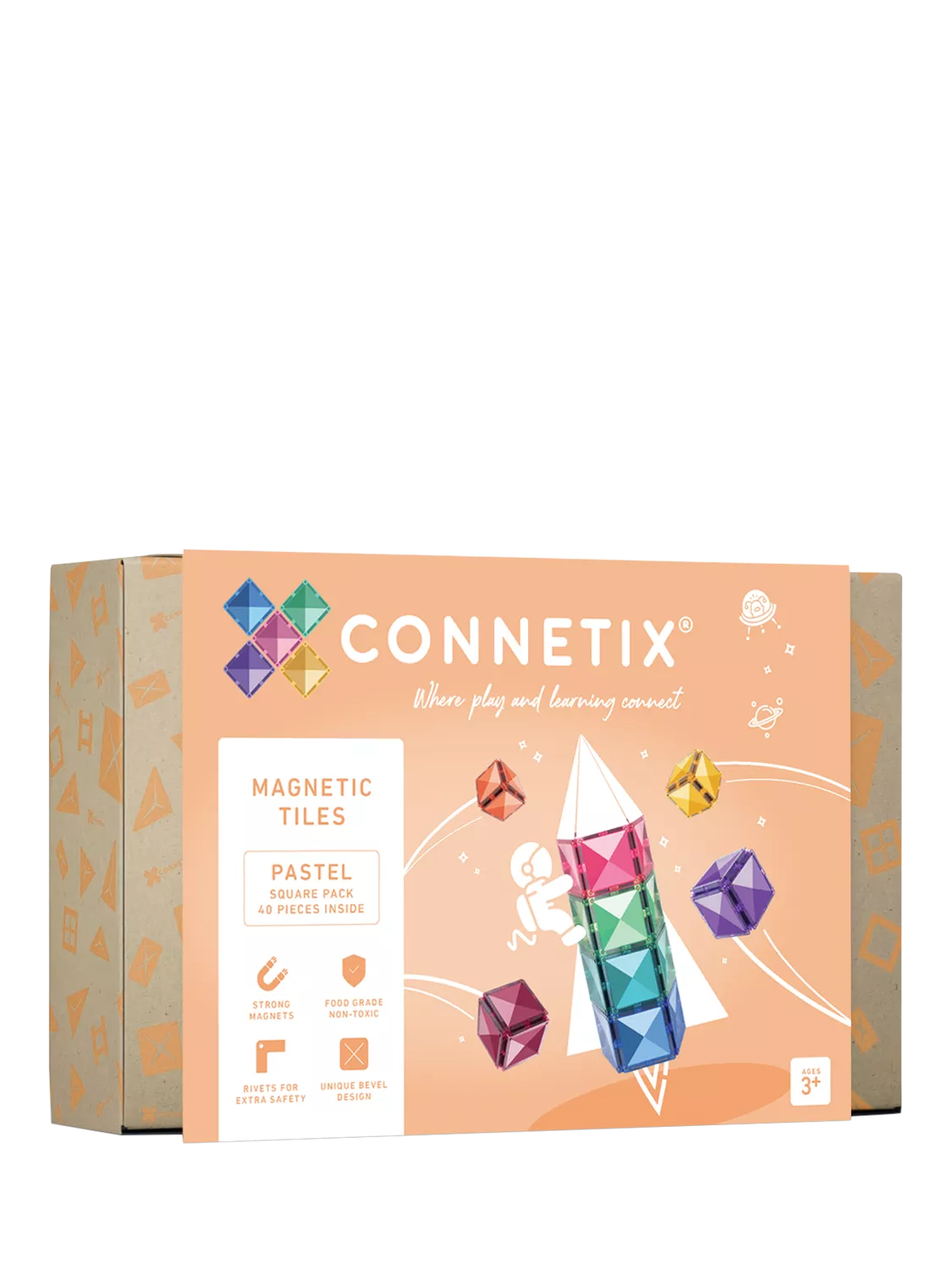 Expand the fun and build even bigger creations! Featuring both large and standard squares in every pastel colour, the Connetix 40 Piece Pastel Square Pack will boost all forms of Connetix fun.