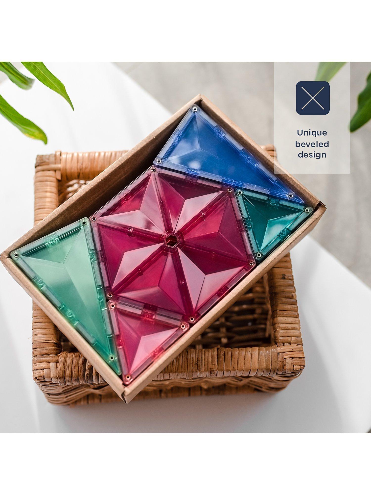 Encourage exciting exploration of geometry aspects like shape, lines, angles, dimensions, fractions, 2D and 3D shapes as well as STEAM concepts of magnetism and colour…all through PLAY! Featuring hexagons and triangles in 8 unique pastel hues, this pack can be added to your existing Connetix collections to enjoy creating patterns, pyramids, dodecagons, mandalas and so much more. Add our pastel hexagons and triangles to your collection and enjoy creating patterns, pyramids, dodecagons, mandalas and so much more! A quality open-ended toy, Connetix grows WITH your child as they develop and their play becomes more complex.