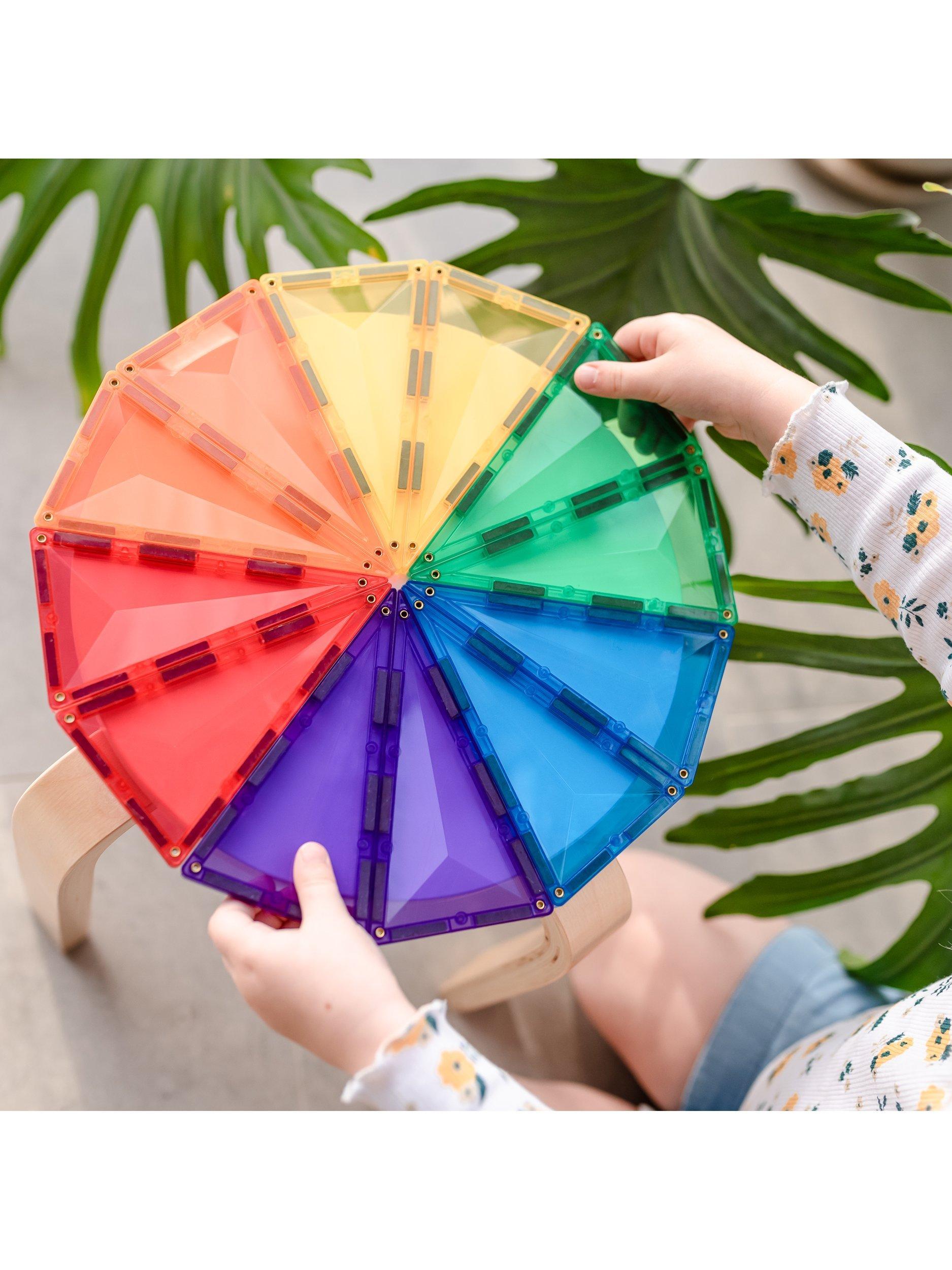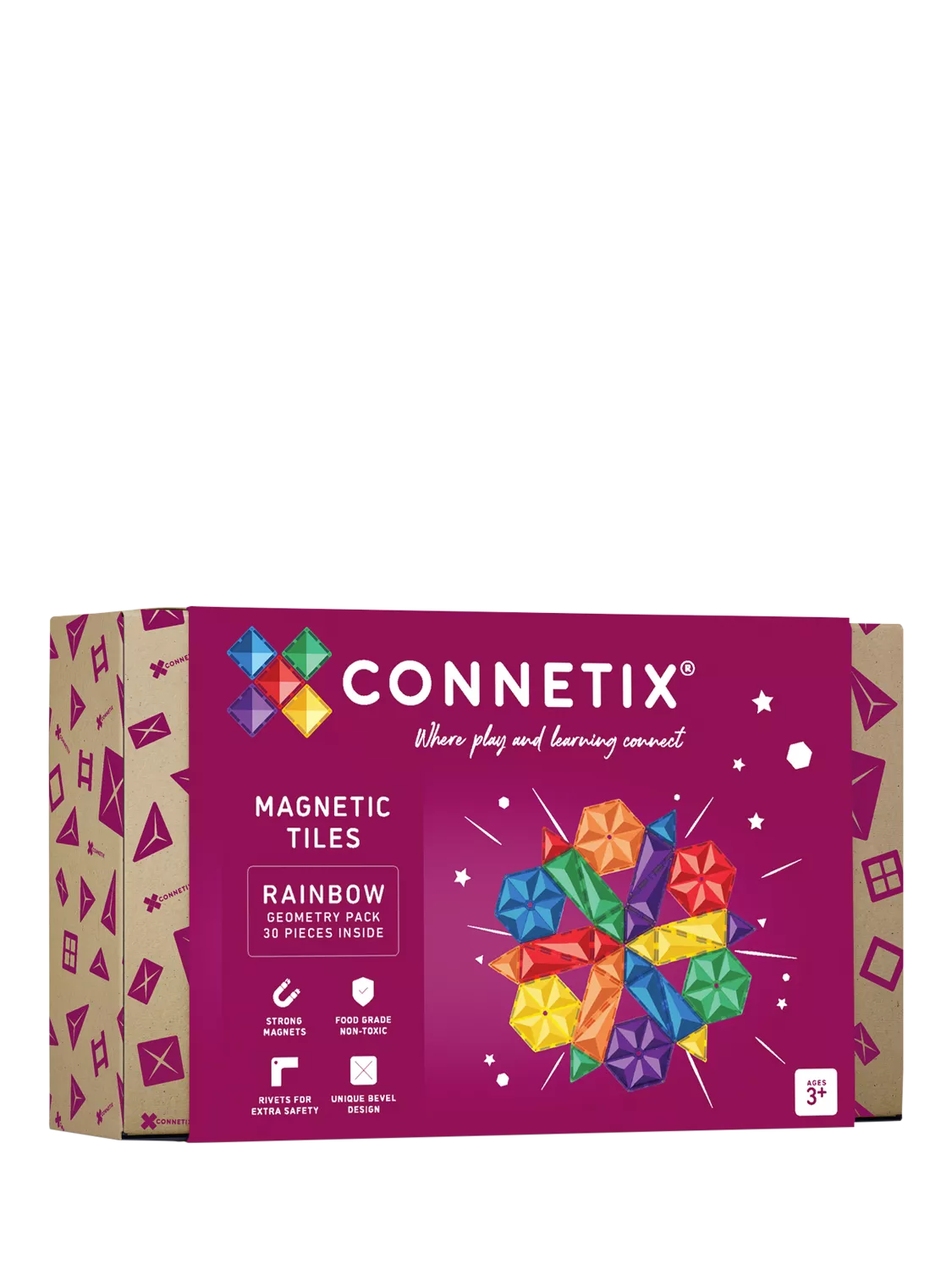 Unlock a world of creative learning with the Connetix Rainbow Geometry Pack. This set is designed to encourage children to explore the wonders of geometry through playful experimentation. Featuring a variety of hexagons and triangles in vibrant rainbow colours, this pack introduces concepts like shapes, lines, angles, dimensions, and fractions in a fun, hands-on way. Whether building 2D patterns, 3D pyramids, or colourful mandalas, children will discover the magic of geometry, magnetism, and STEAM learning through play.
