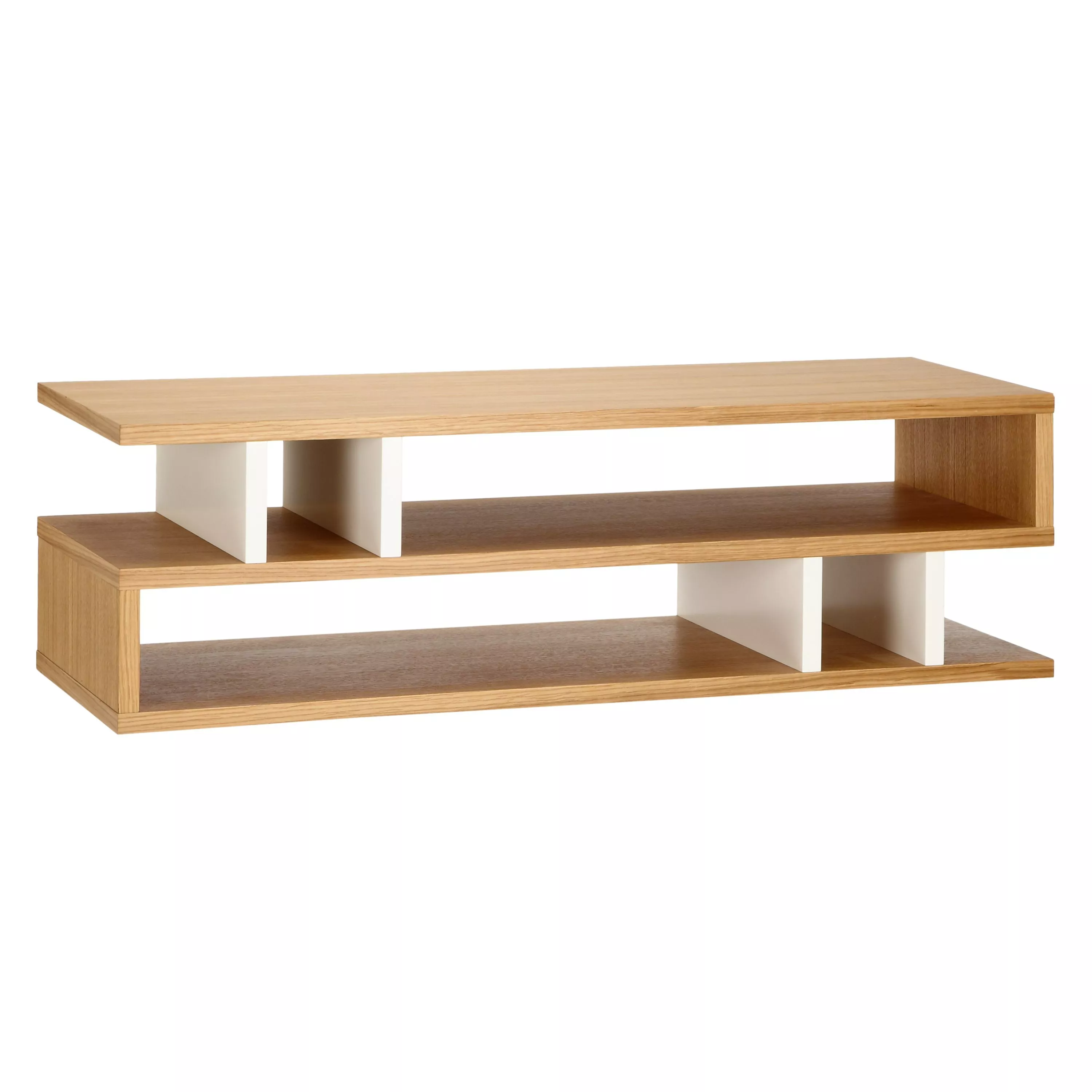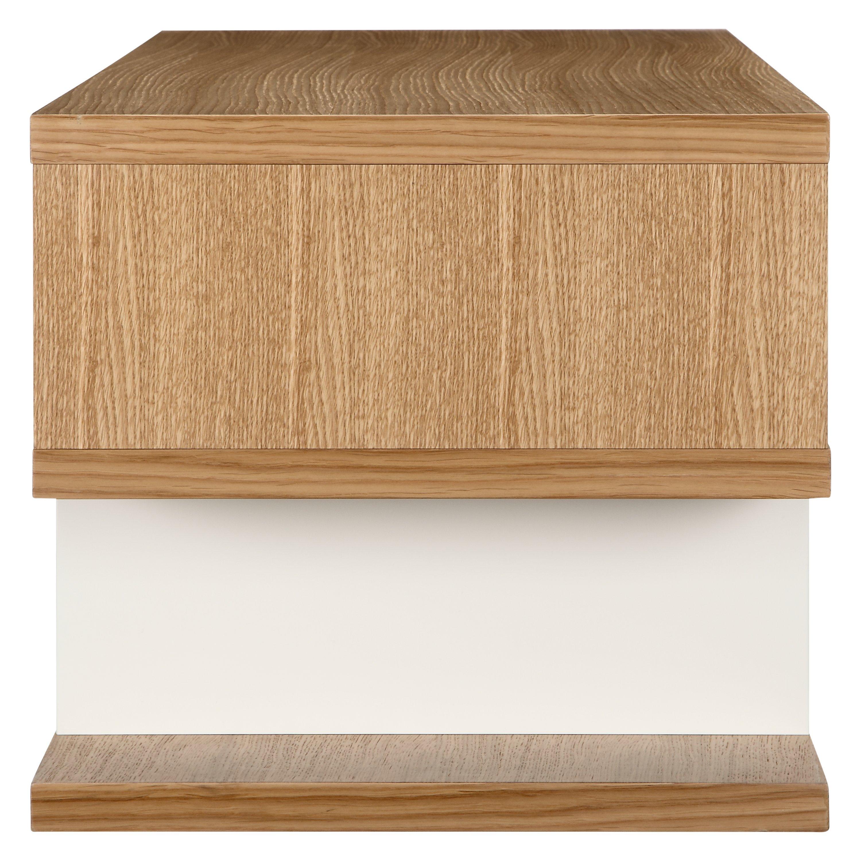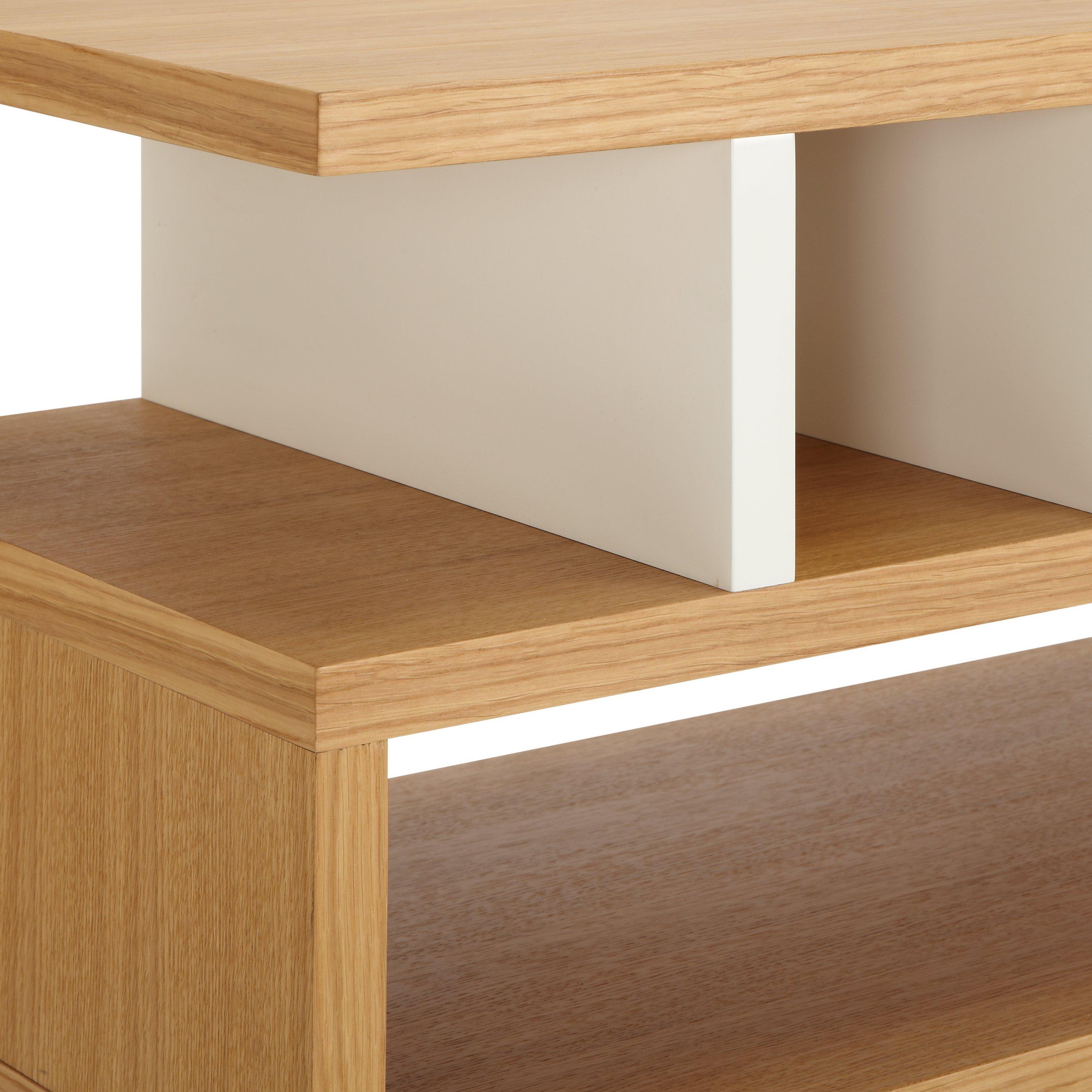 A flowing outline engages with contemporary square edges to make this Counterbalance piece more than just a coffee table. There’s plenty of room to display pieces or keep books, while the high design accentuates your space. Finished with a hard-wearing oak veneer, this table arrives fully assembled so you can begin to use it immediately.