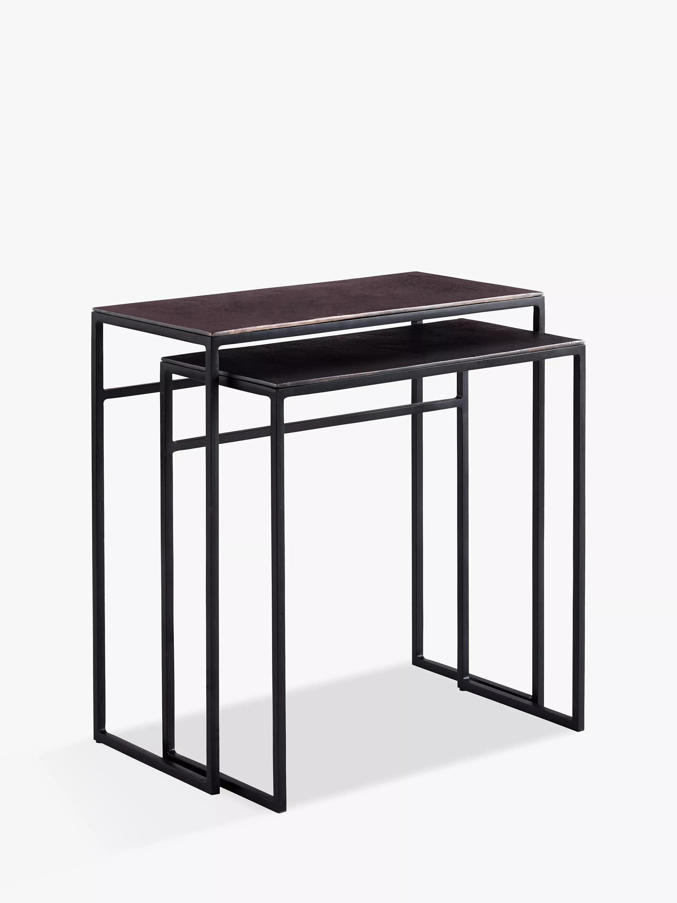 Bringing a chic look to your living room, this Content by Conran nest of 2 tables features sharp geometric styling with rectangle surfaces and cuboid frames. Made from aluminium with iron legs, these tables make a versatile, stylish and durable addition to your living room.