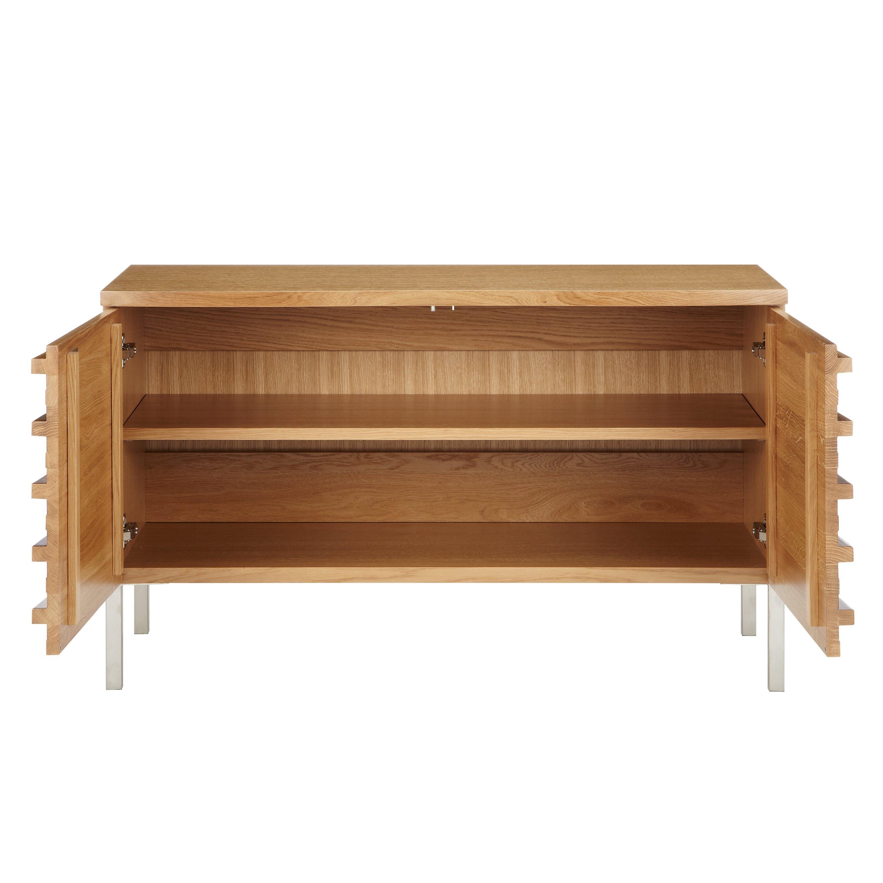Made from solid woods and veneers this stunning sideboard is both visually appealing, as well as durable and long-lasting. Two doors open to reveal a single shelf with plenty of space to stash your possessions, keeping your interior organised and free from clutter.