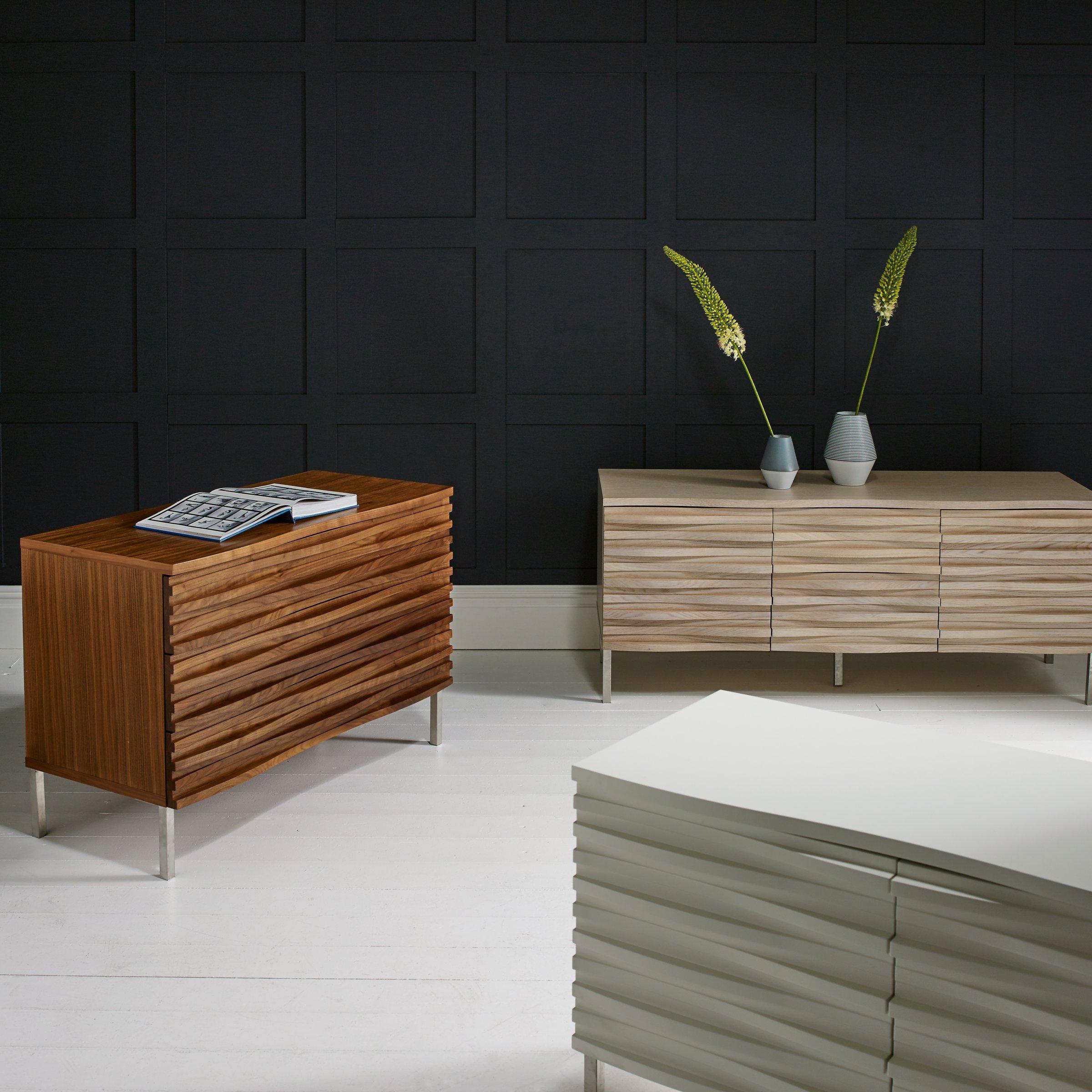 Derived from Russel Pinch's 2005 sideboard design, Terrence Conran has created the Wave collection. Featuring clean lines and a squared profile, each piece is offset by the organic wave effect of its sculptural front. The whole range lends itself well to a variety of locations around the home, whether you're looking to enhance your living, bedroom, or hallway space.