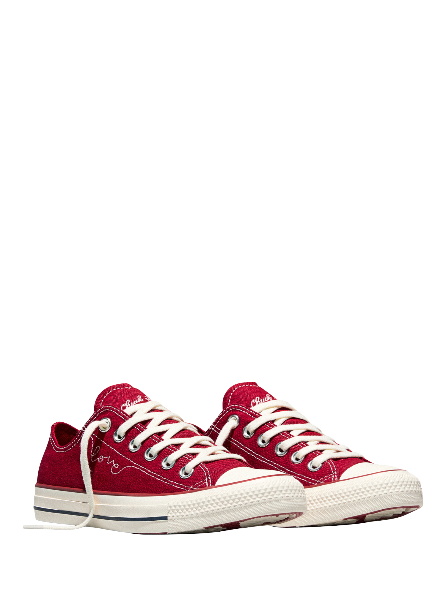 Canvas upper for that classic Chucks look and feel. OrthoLite cushioning helps provide optimal underfoot comfort. Embroidered text, heart-shaped tongue, and removable charms show love from every angle. Two sets of laces let you switch up your look. Iconic Chuck Taylor ankle patch and license plate.