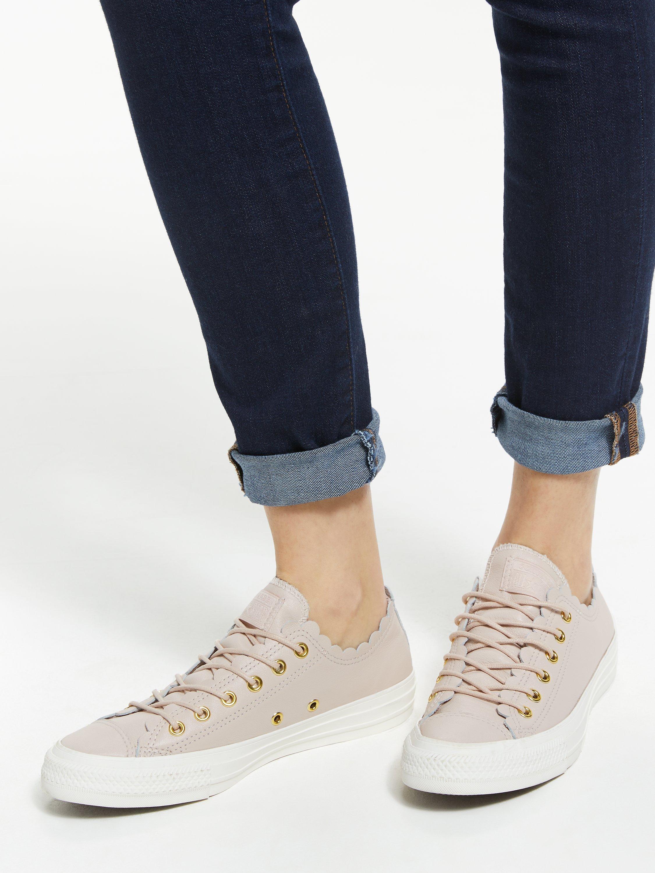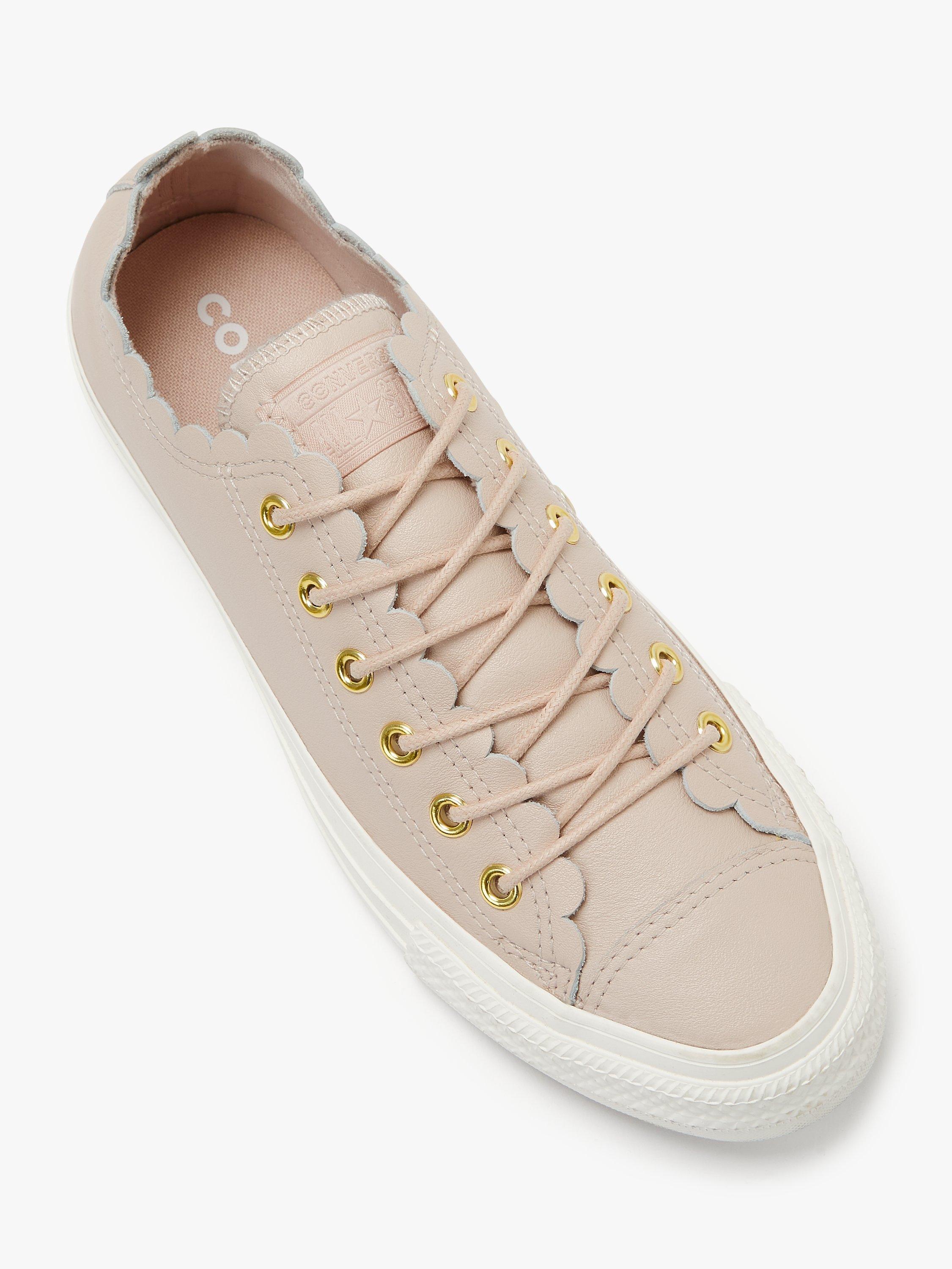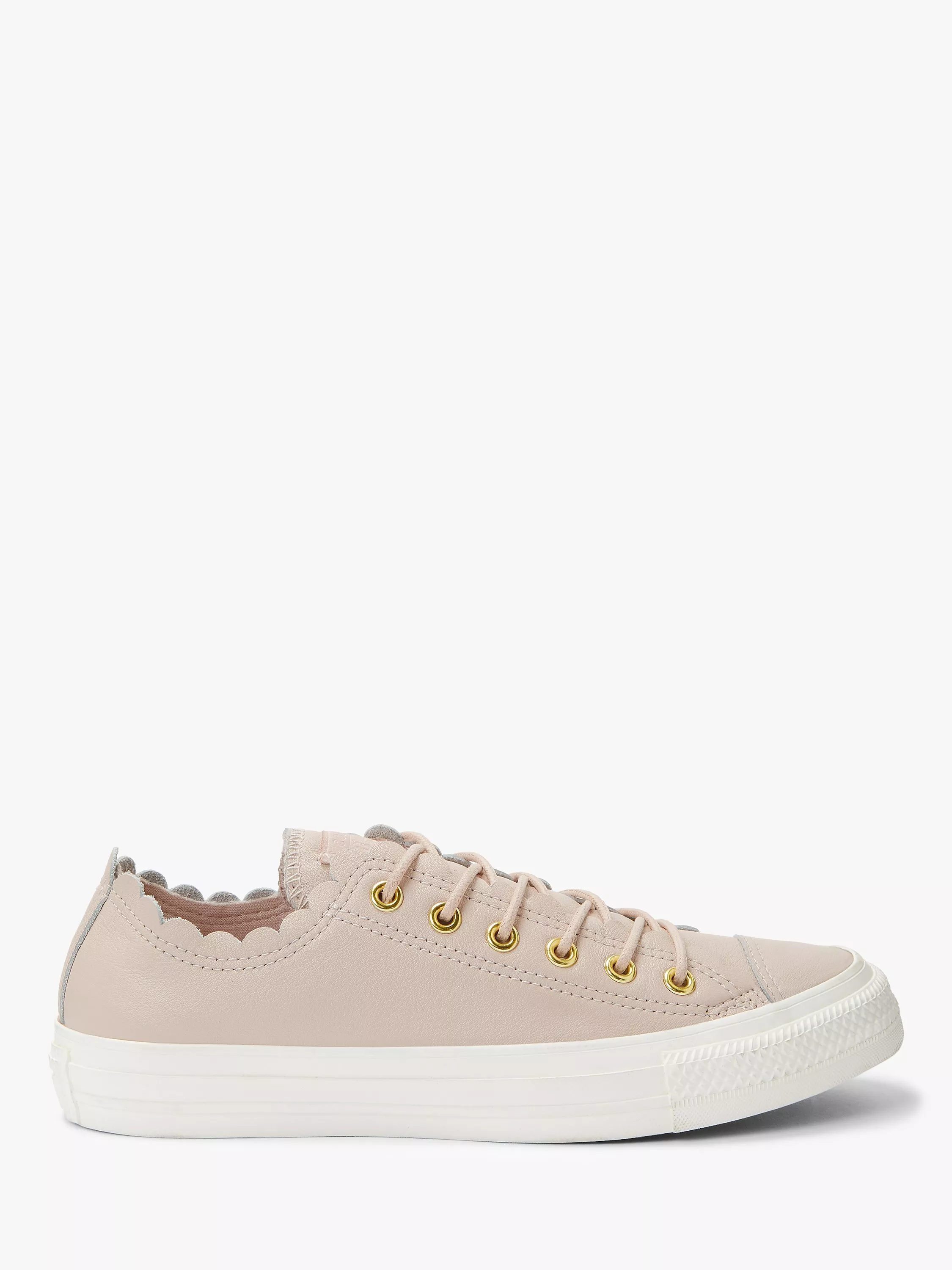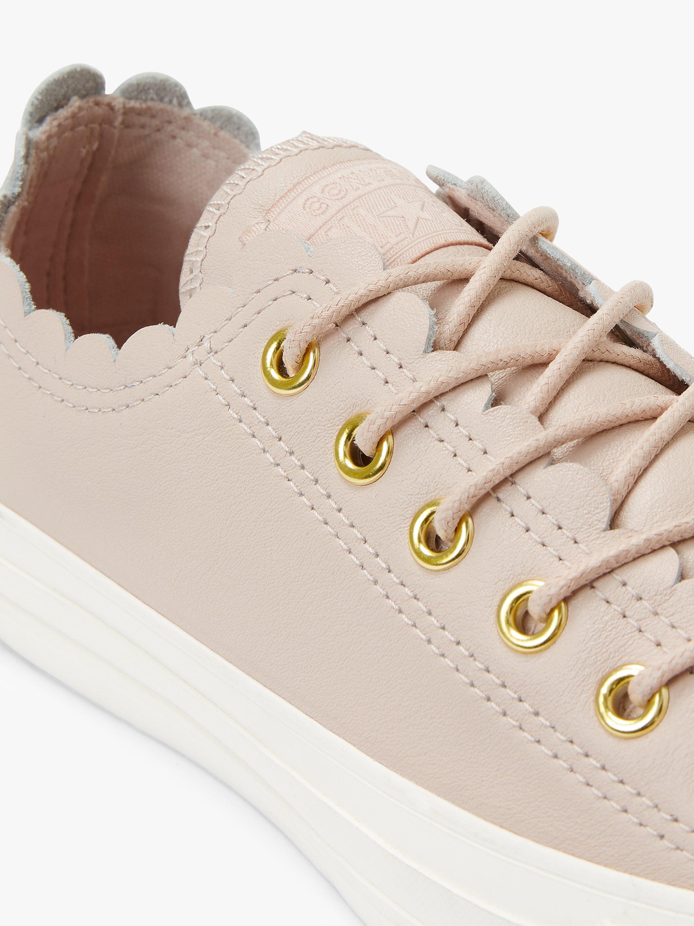 Add a classic style with a modern, feminine twist to your collection with these Chuck Taylor trainers from Converse. Boasting the brand's iconic low top silhouette, they feature unique scalloped detailing at the ankle.