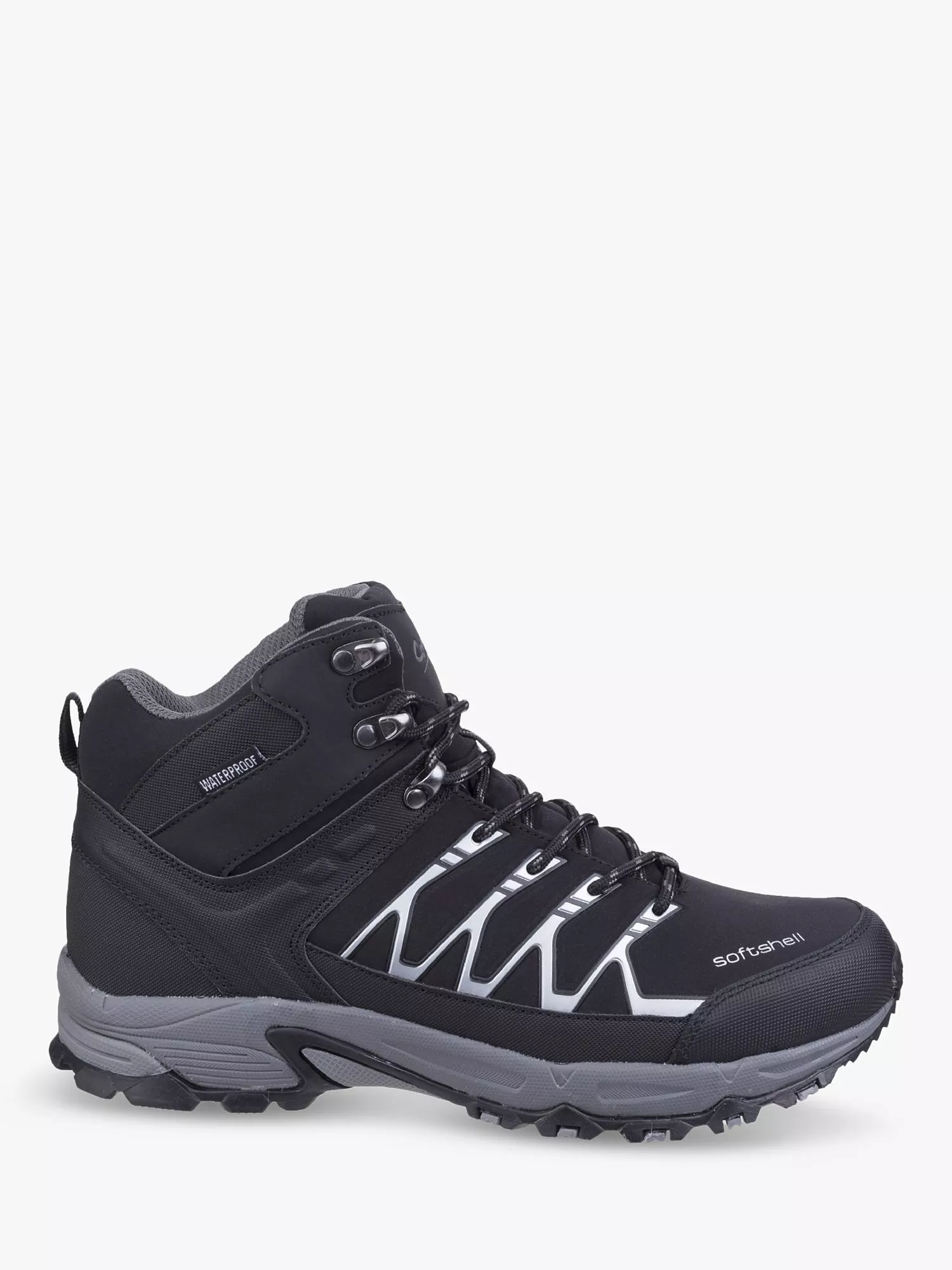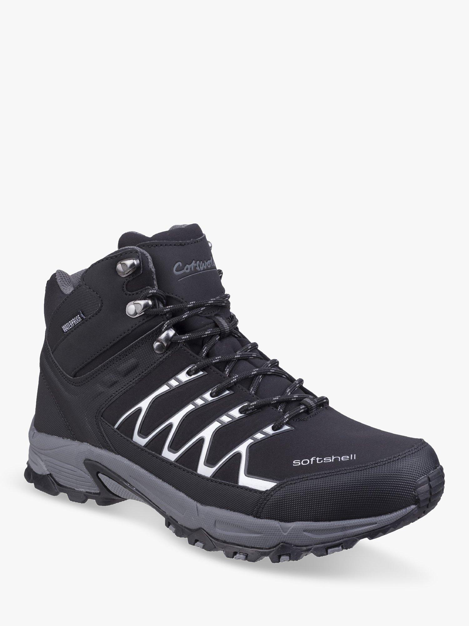 - Upper: softshell and PU, Lining: waterproof membrane/mesh, Sole: rubber