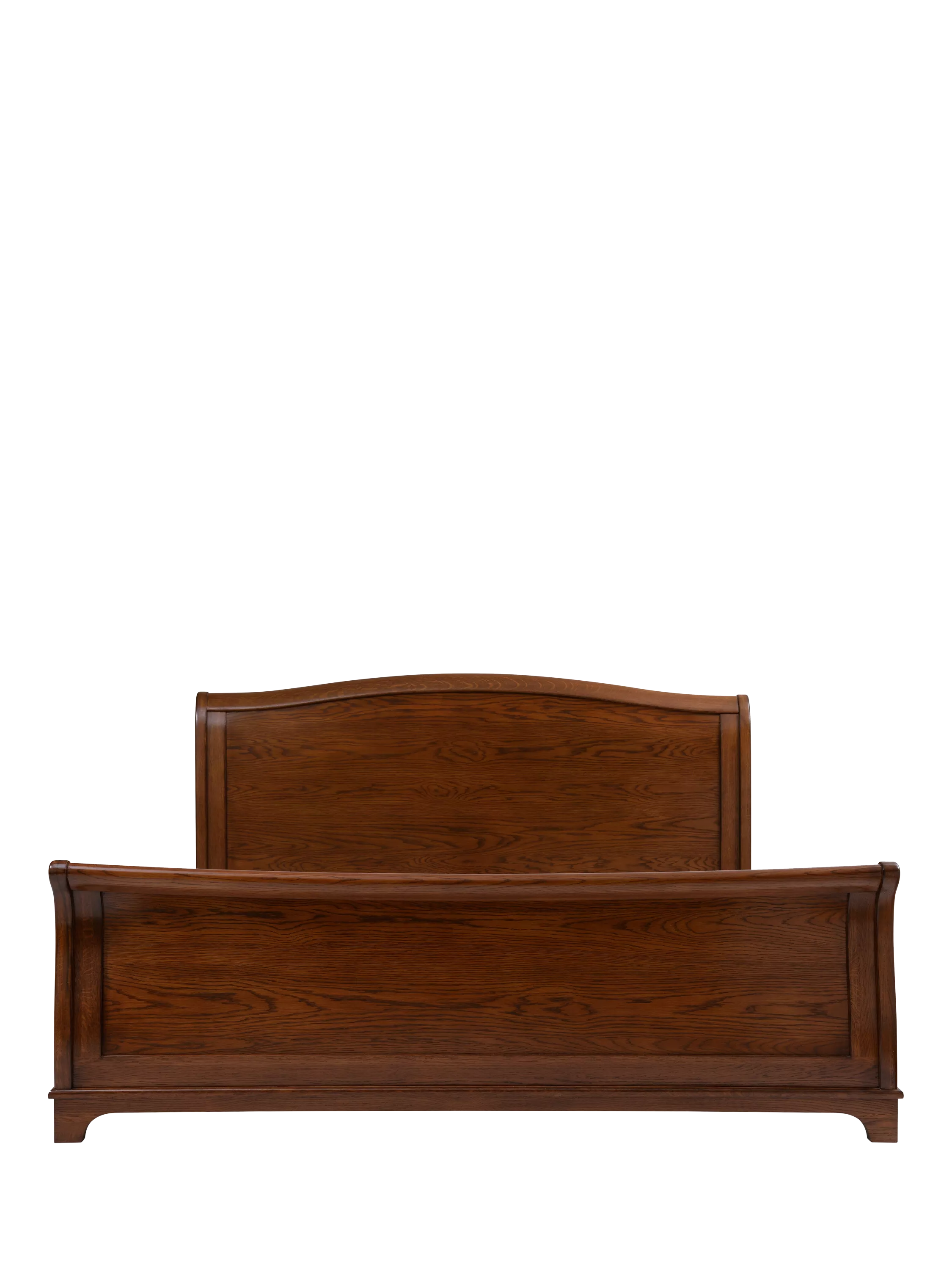 Full of charm and traditional character, this sleigh bed features soft curves at both ends that help to accentuate its elegant style. It's carefully crafted from robust solid oak veneer in a striking dark stain and sprung slats provide a supportive base for your mattress.