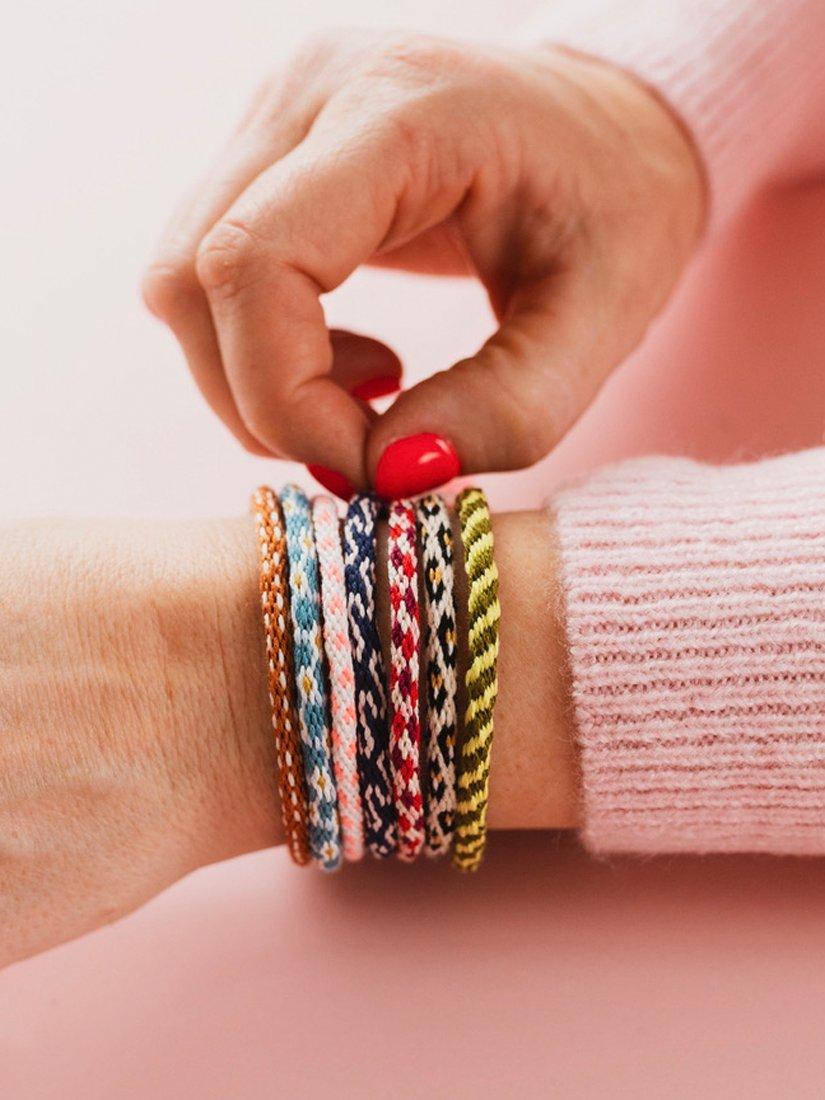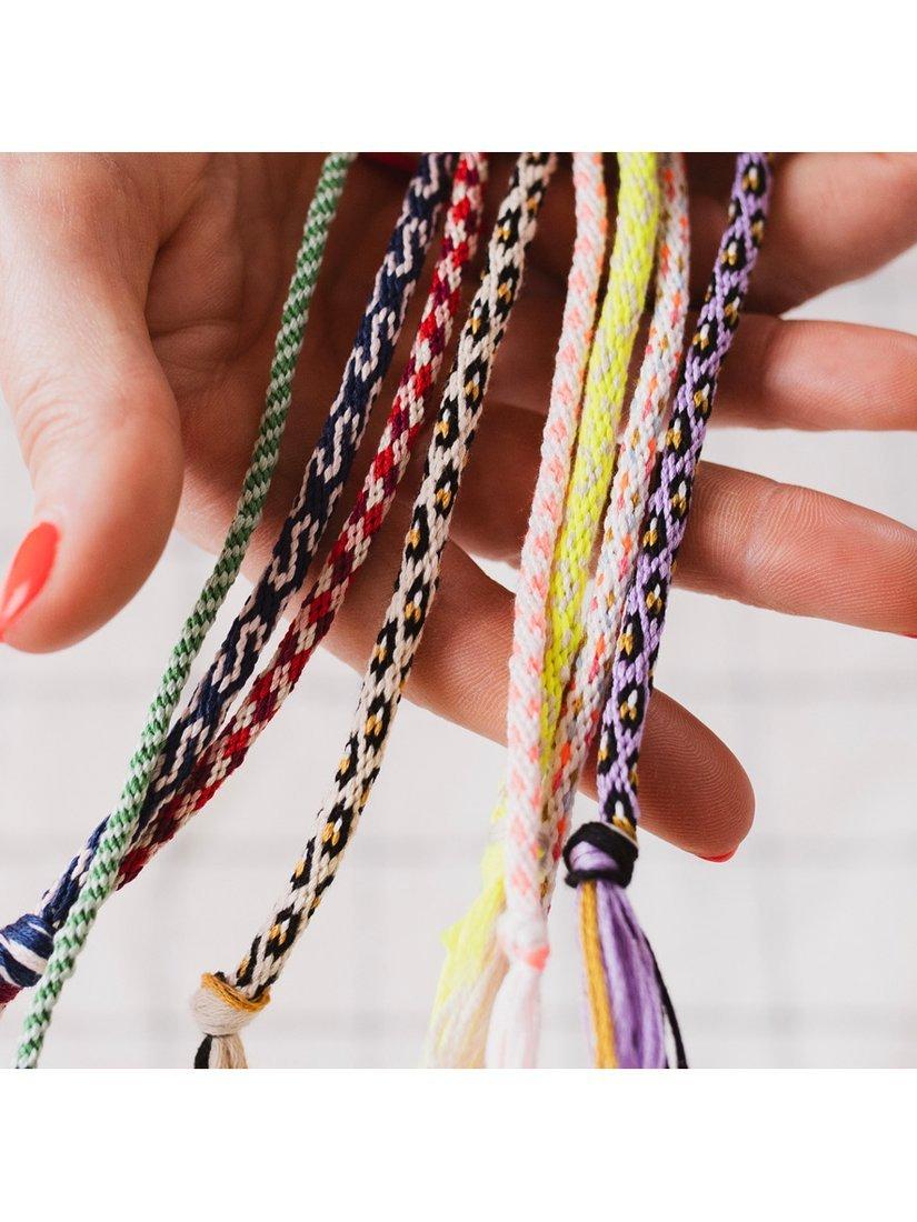 With 7 unique designs (including a super-cool leopard print) and over 15 skeins of vibrant thread, you've got everything you need to make beautiful, one-of-a-kind braided bracelets.