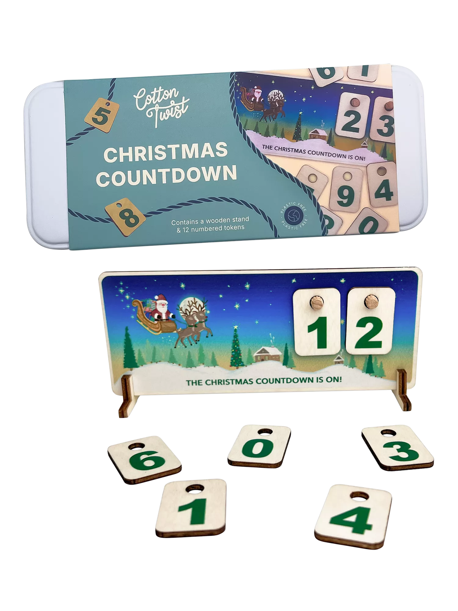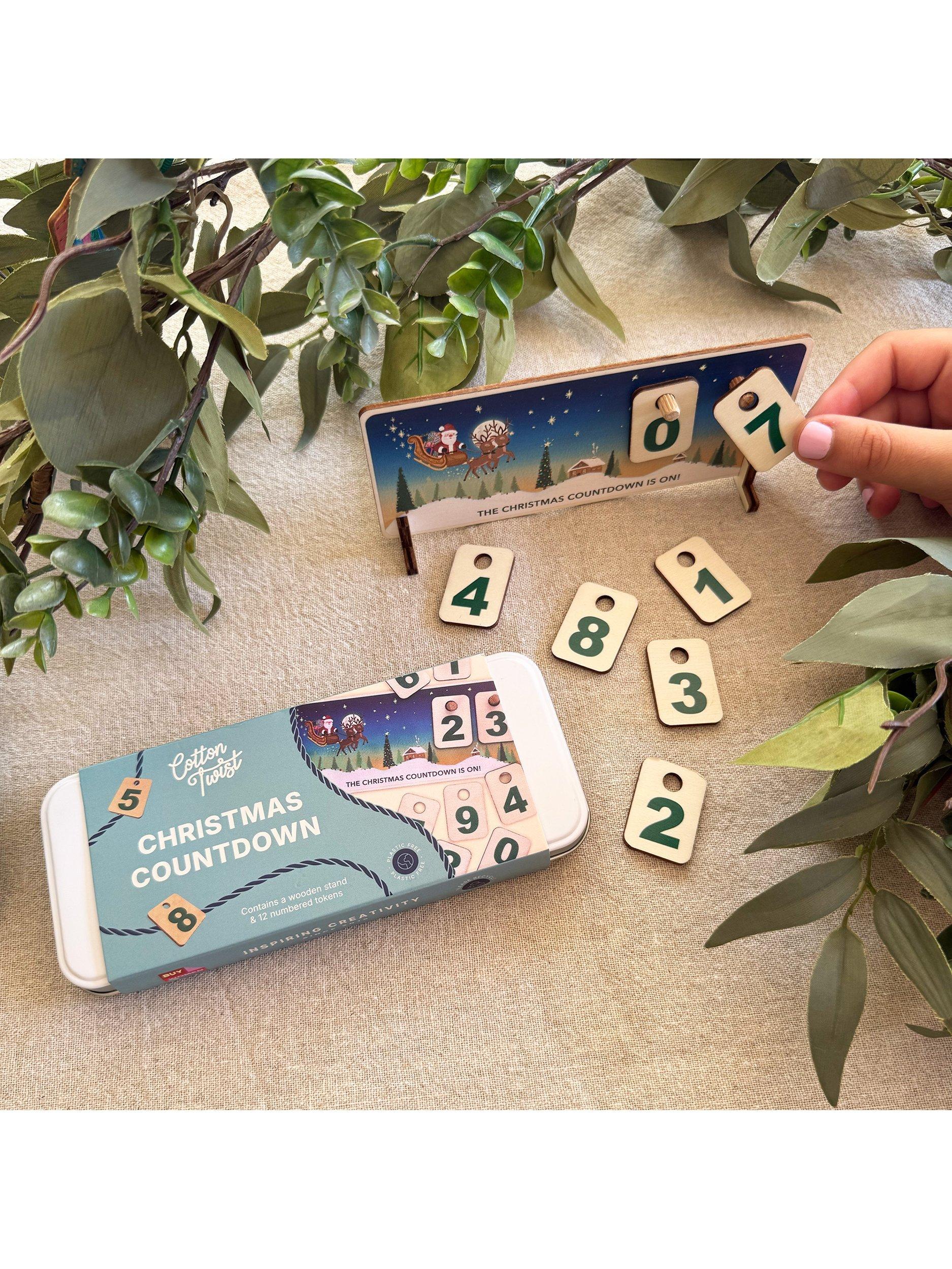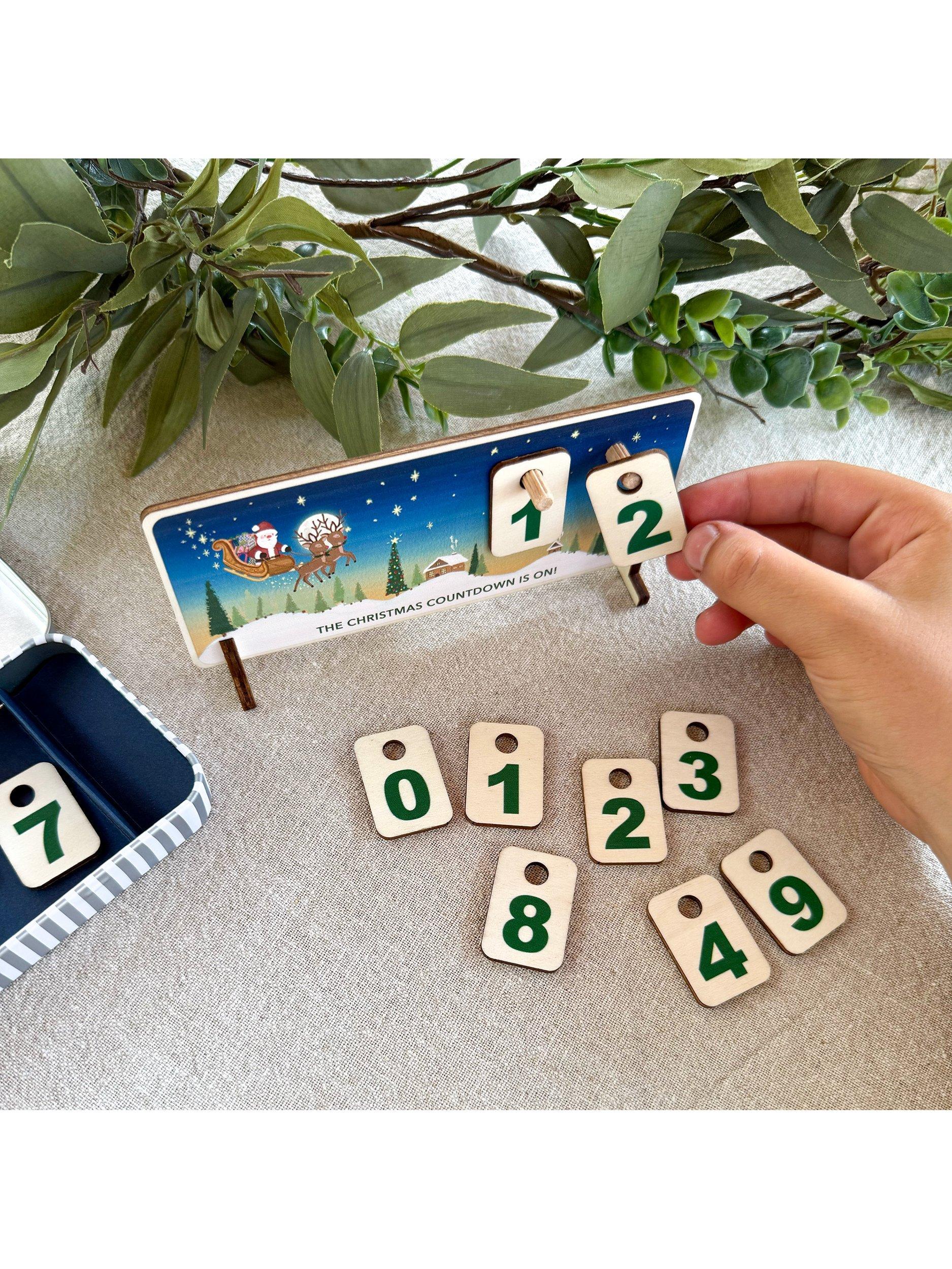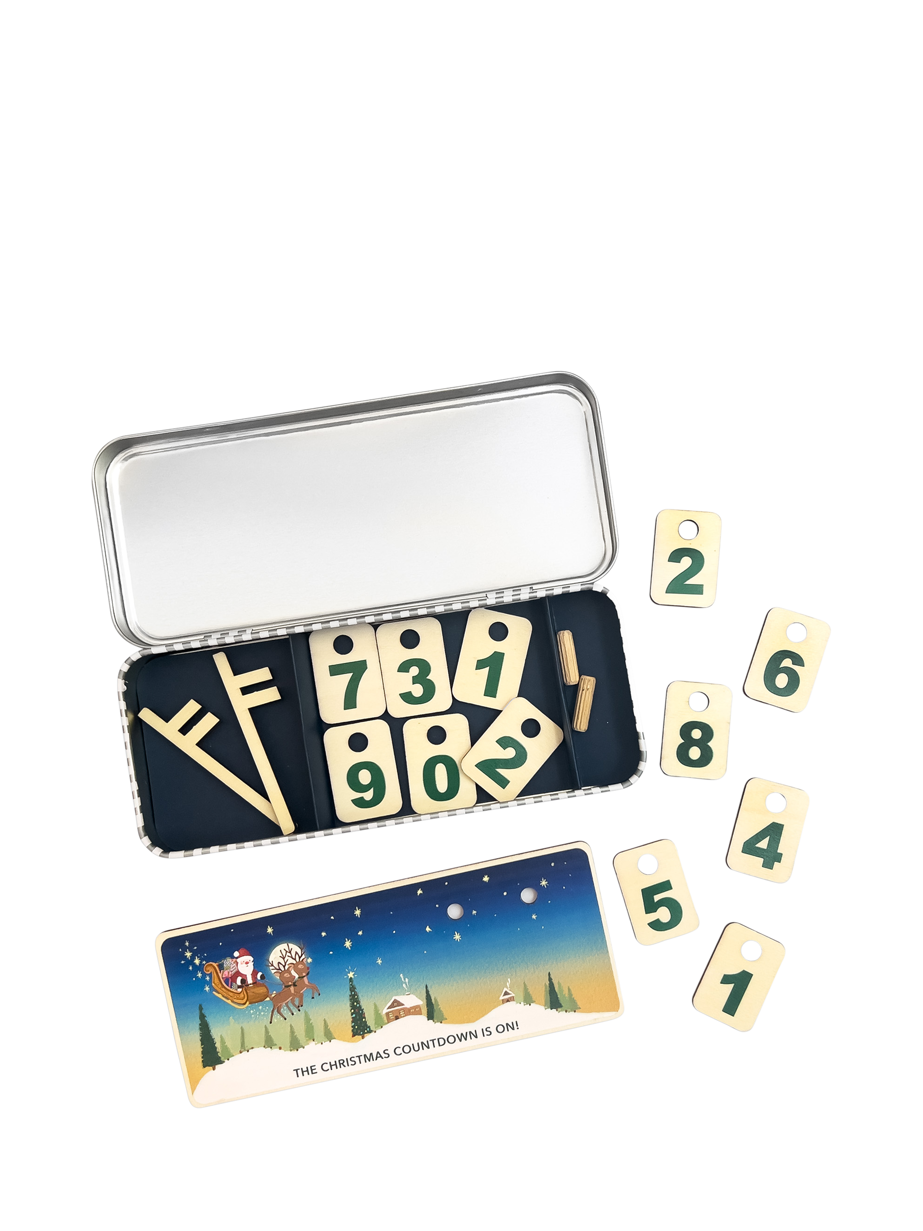The beautiful tin includes a wooden stand featuring a festive scene that brings the magic of Christmas to life. The set also includes numbered wooden tokens to mark each day leading up to the big day, creating a fun and interactive way for children and adults alike to celebrate the season.