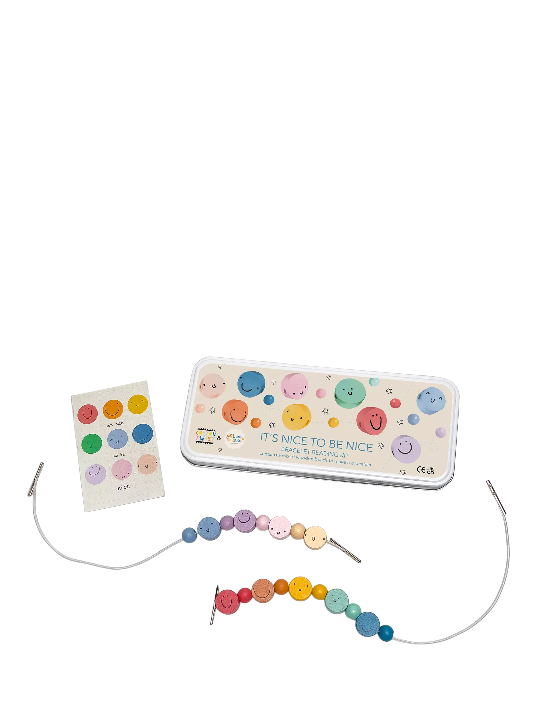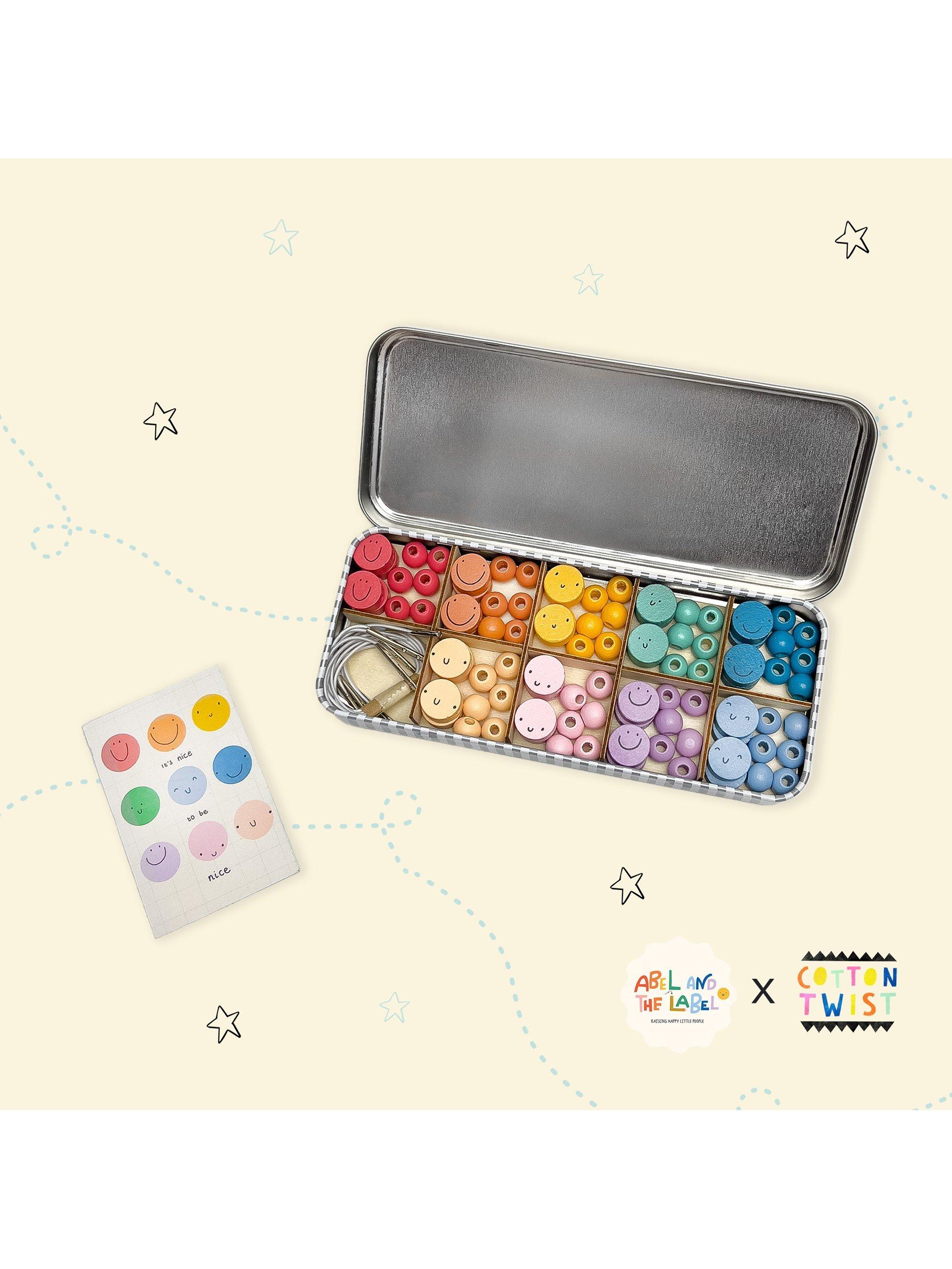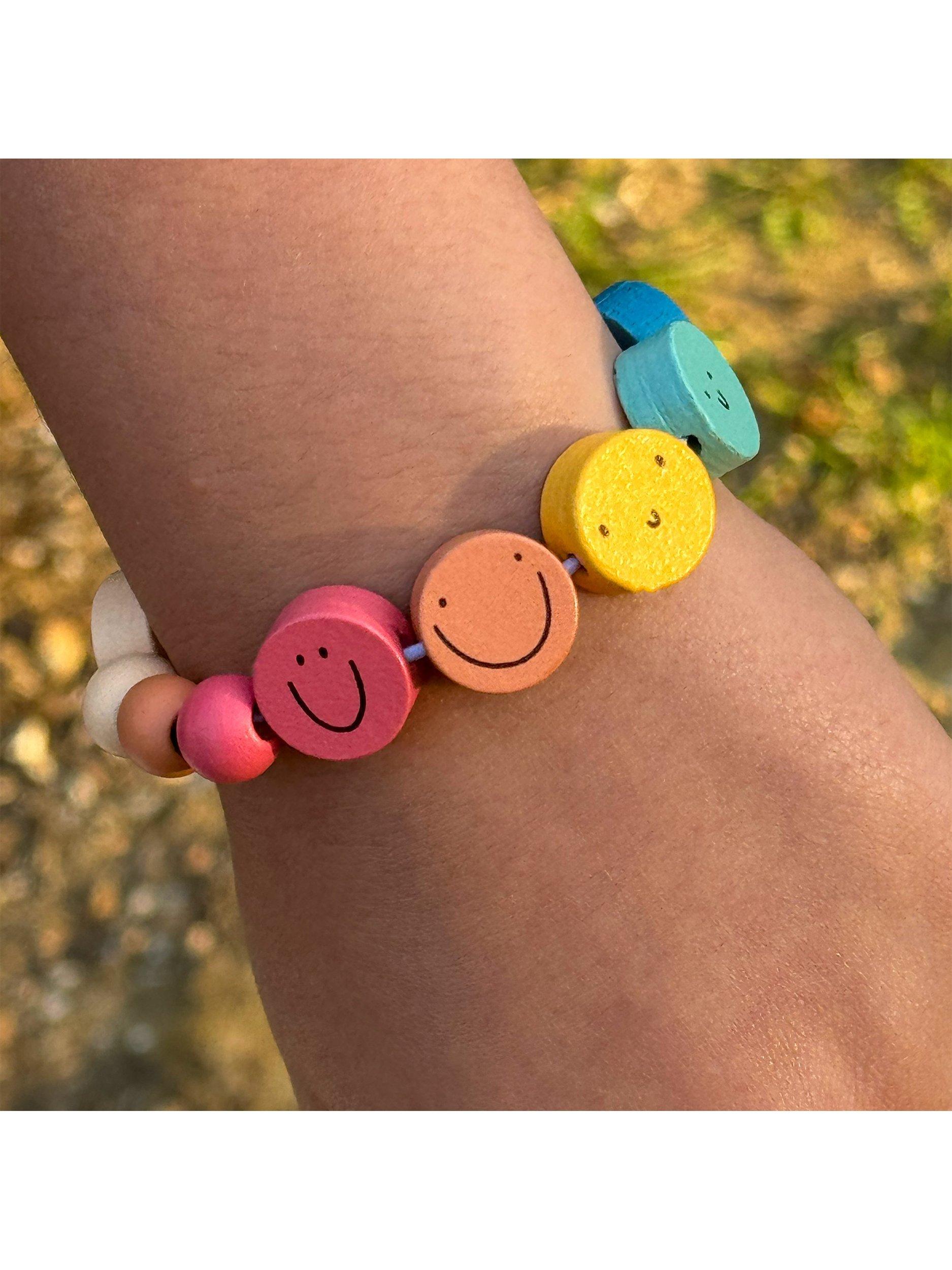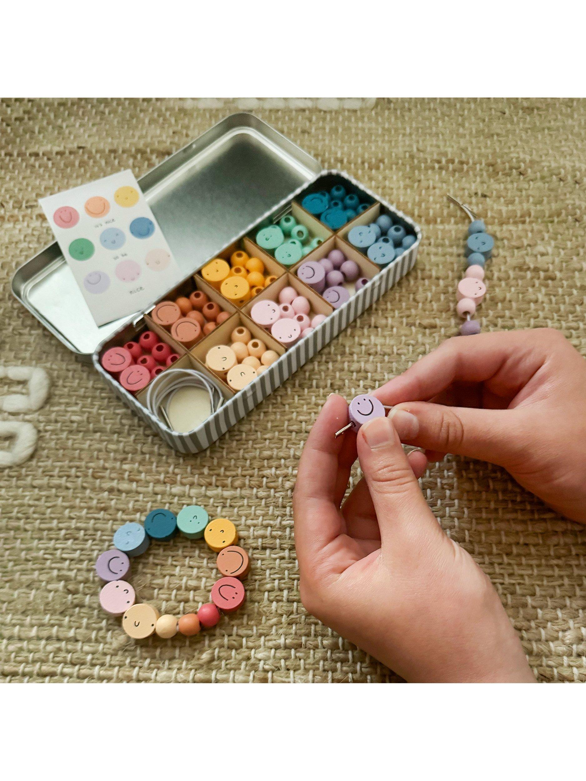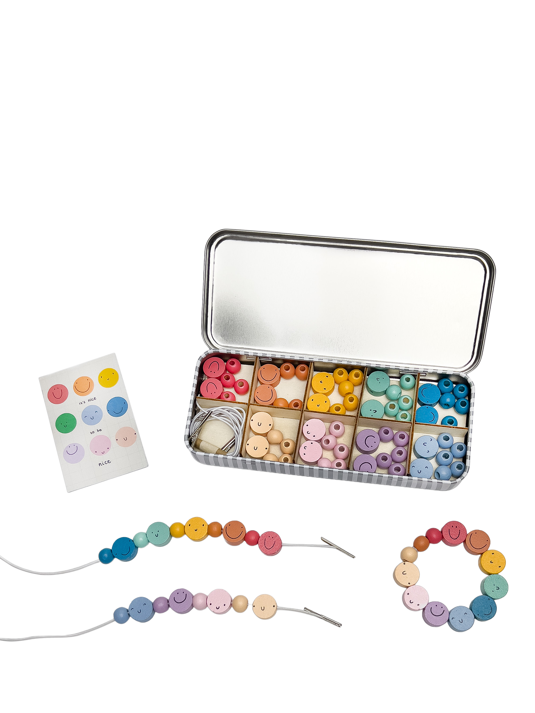 Crafted with love, this set is more than just a fun activity as teaching children the value of kindness is essential. Containing enough wooden beads and elastics to make 5 beautiful bracelets, a selection of smiley faces and colourful spherical beads await!