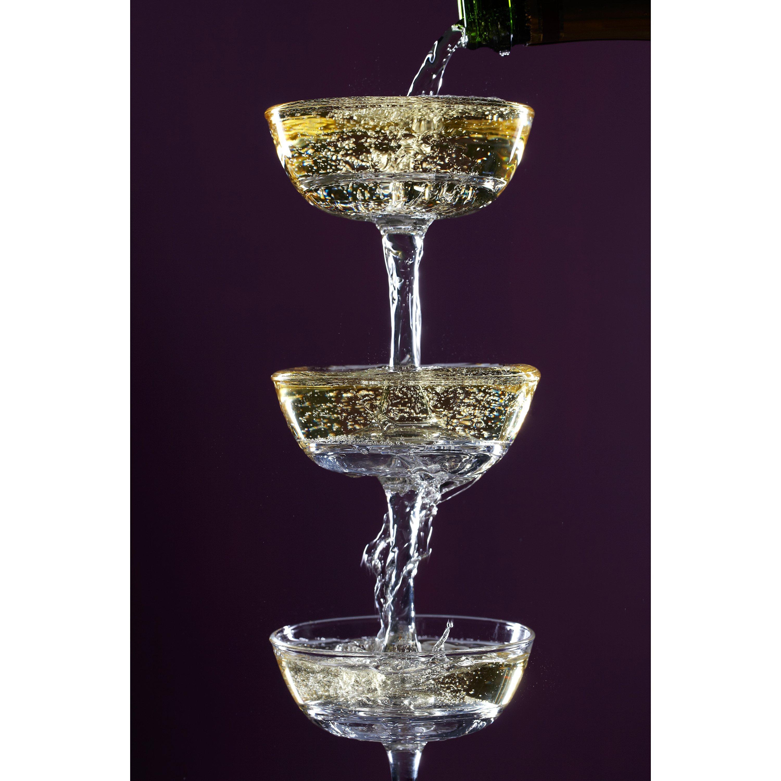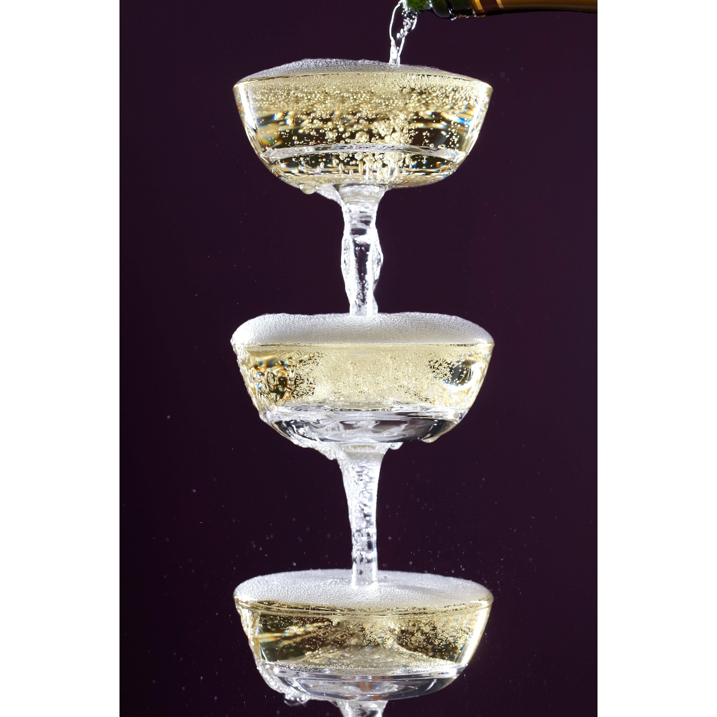 As the champagne is poured, it cascades down the tower from glass to glass to create an attractive, effervescent waterfall. The six glasses can be filled with a full 75cl bottle of champagne.