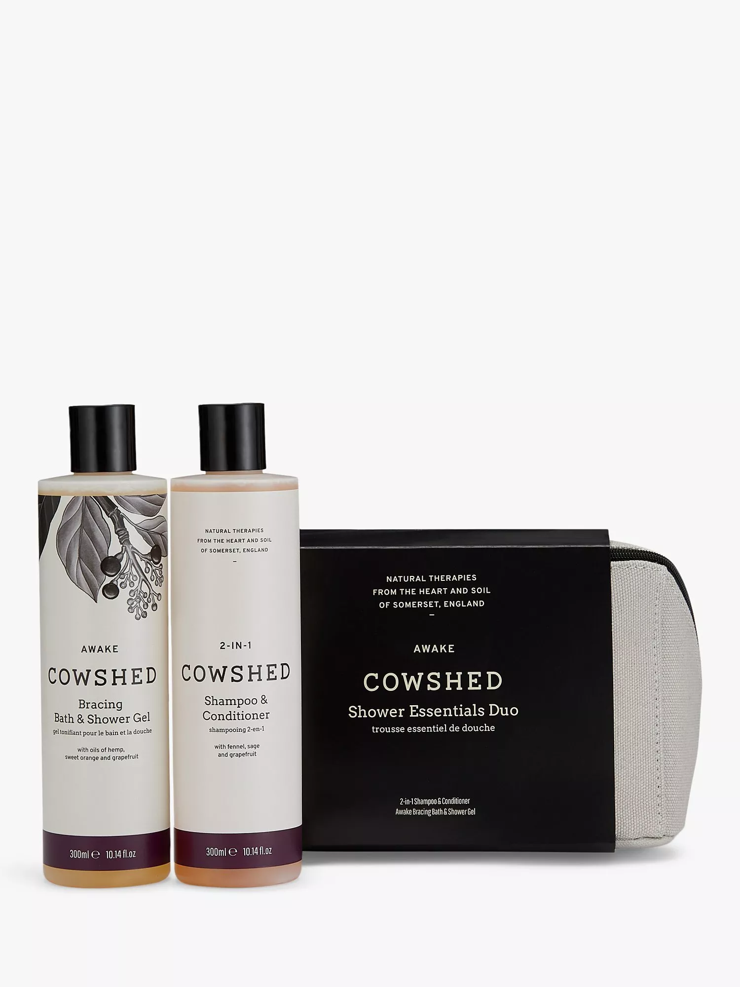 In a sturdy Cowshed washbag, it makes a great travel companion.