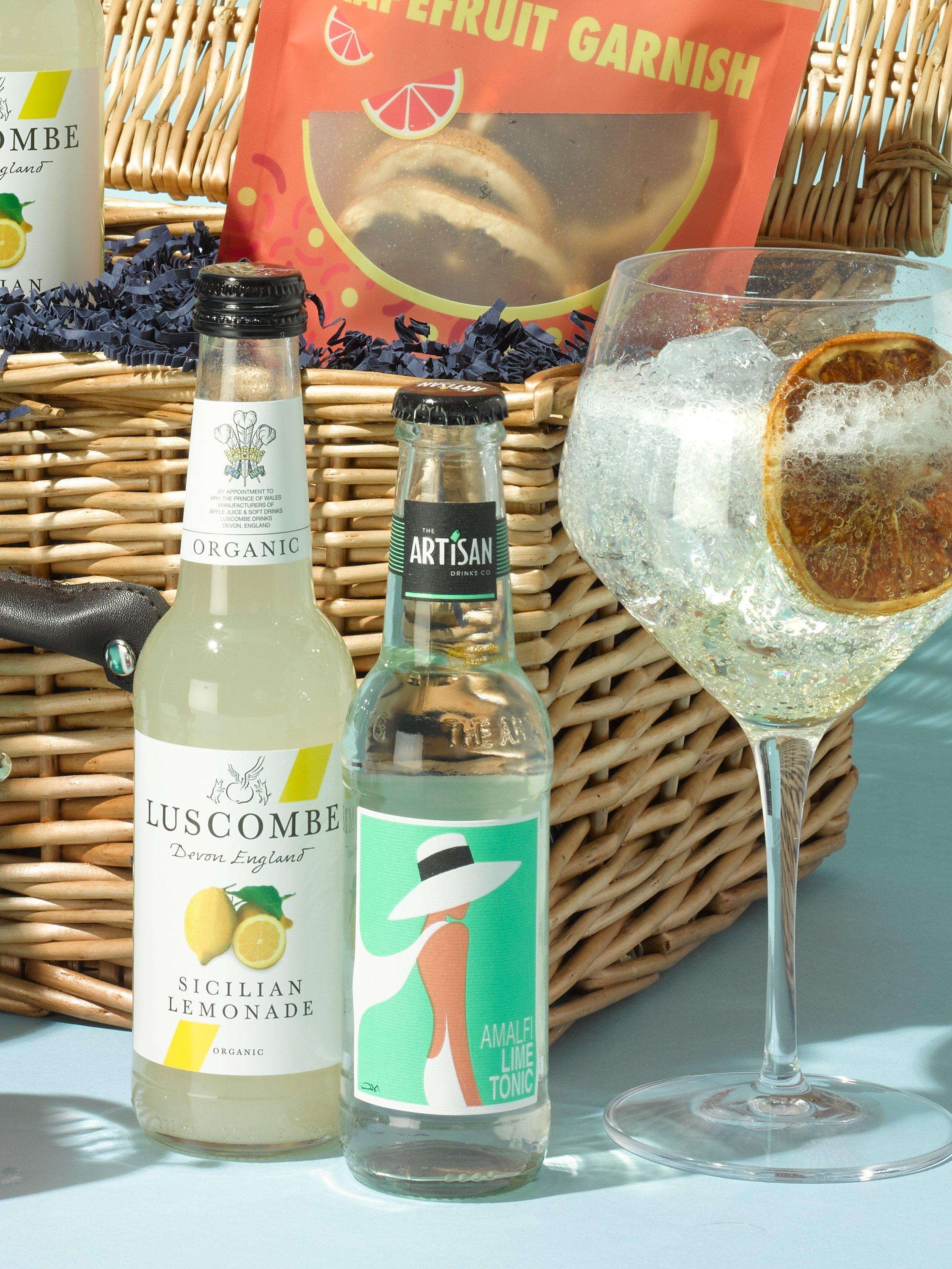 - Artisan Tonic 2 x 200ml: Sparkling Water, Cane Sugar, Acid: Citric Acid, Natural Flavourings including Quinine. Dried Grapefruit Garnish 50g 100% dried grapefruit. Bramble Cocktail Syrup 500ml: Water, sugar, concentrated, lemon juice, concentrated, lime juice, acidifier: citric acid; aromas and natural flavourings, natural carrot and blueberry extract, preservatives: E202 & E211. Luscombe Sicilian Lemonade 2 x 270ml: Devon Spring Water, Organic Sicilian Lemon Juice (12%), Organic Raw Cane Sugar, Organic Sicilian Lemon Oil, Organic Madagascan Vanilla Extract. For allergens, see ingredients in capitals.