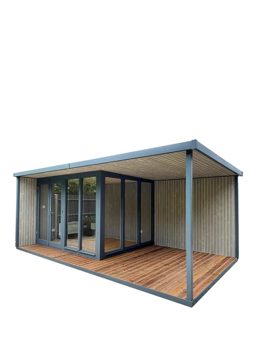 The Hub Plus corner studio features floor-to-ceiling glass panels on two sides to let sunlight flood in, creating an open and airy feel with a broad view of your outdoor space and garden from the studio itself or its verandah.