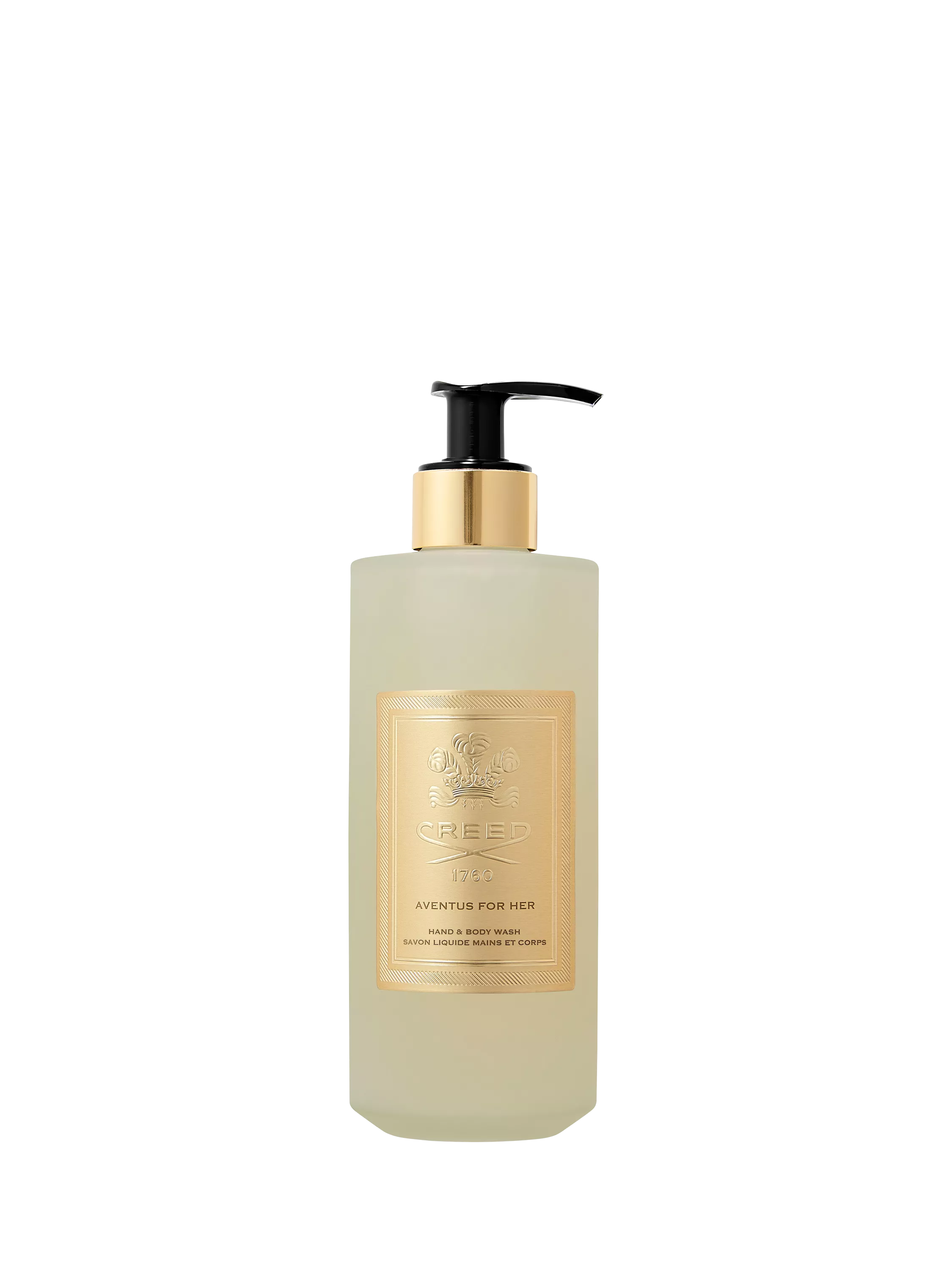 Elevate the everyday with the Aventus For Her Hand & Body Wash, a luxurious gel that transforms into a delicate foam, gently cleansing the skin without stripping it, while veiling it in one of The House of Creed's most celebrated scents, where velvety peach entwines with petal-soft rose.