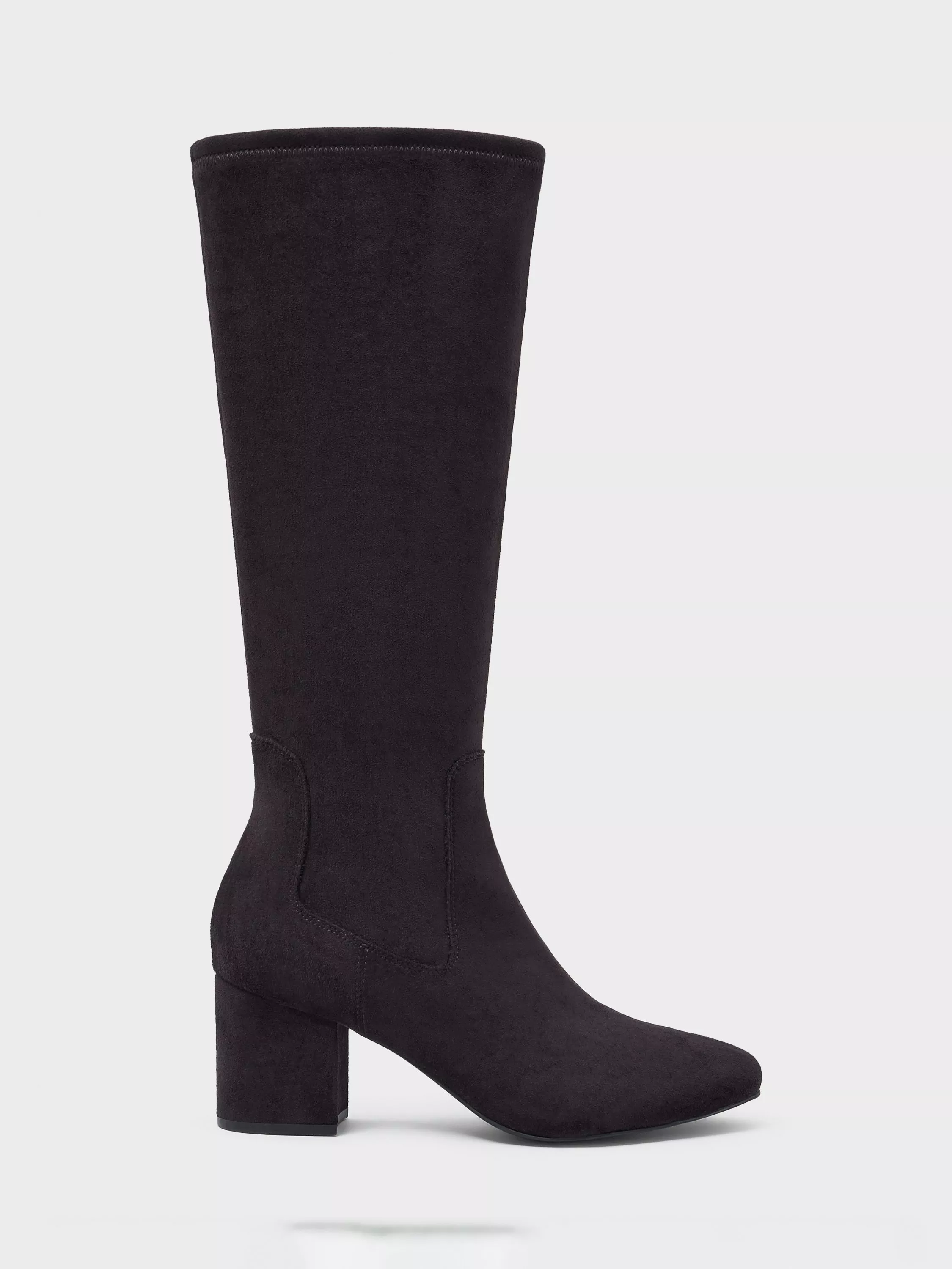 Bella knee high stretch boots. Crafted in soft suede with a zip fastening and small heel, these knee highs are both stylish and comfortable. Designed to fit perfectly, they’ll stay up all day long, no matter what you wear them with. Pair with your favourite dresses and midi skirts.